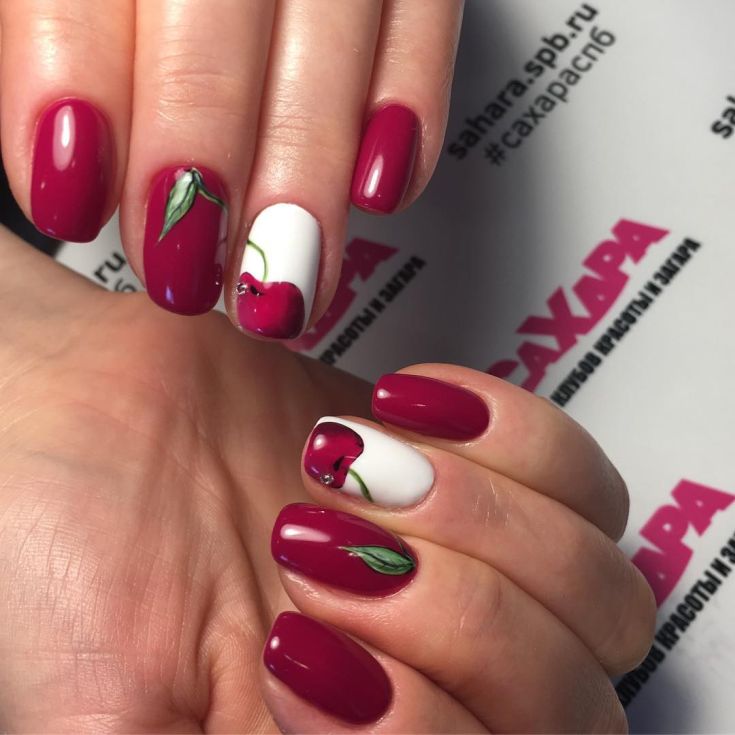 La manucure dans de jolis tons de cerises est une excellente option pour créer un ongle d’été ou d’hiver froid, festif et quotidien.