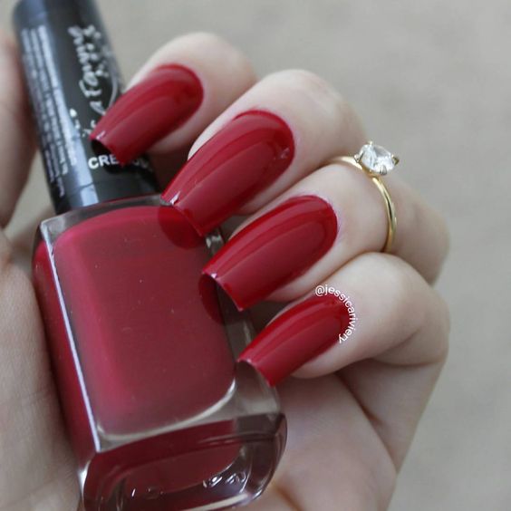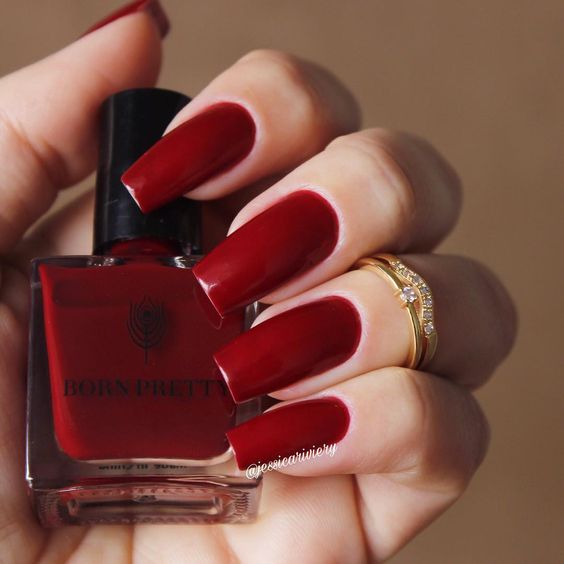 - Manucure cerise solide