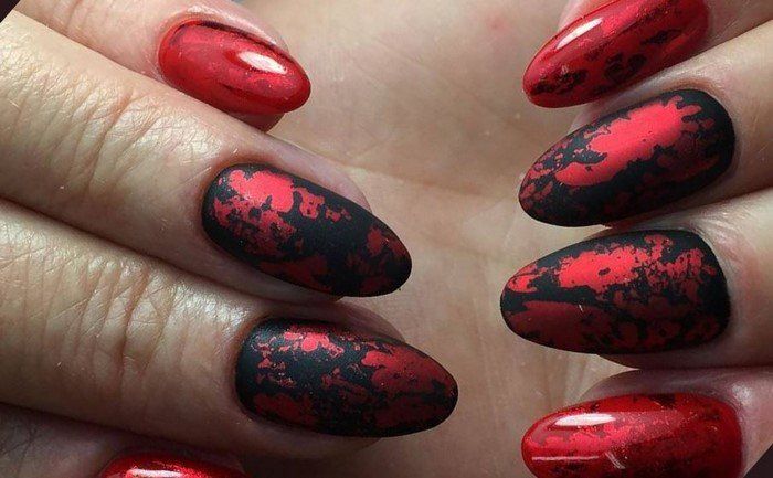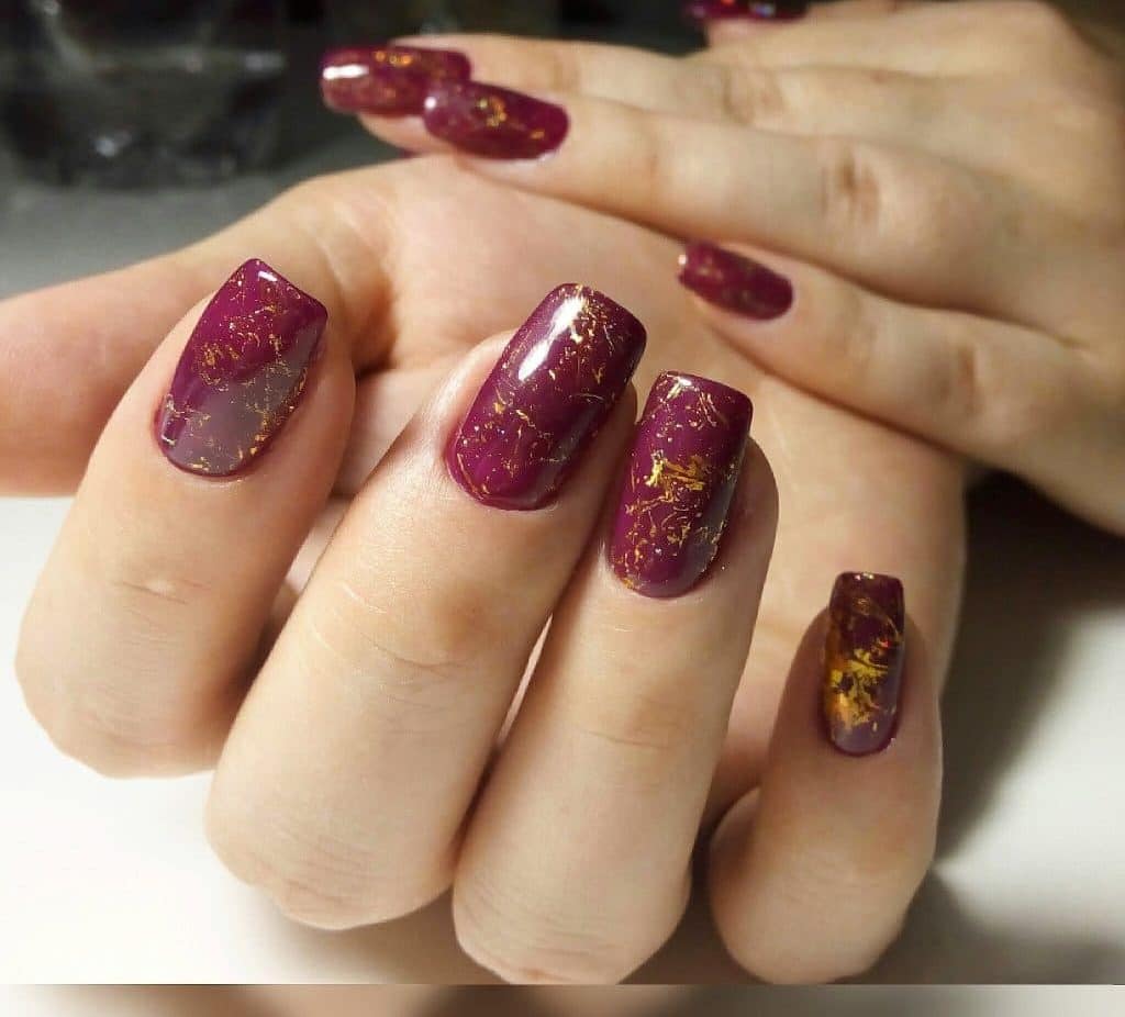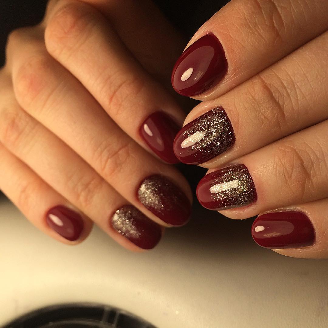 La combinaison la plus luxueuse et la plus belle dans la conception des ongles est considérée comme une manucure cerise-rubis avec de l'or. Bien avant la création du nail art, les bijoutiers utilisaient une telle combinaison spectaculaire dans la fabrication de bijoux en pierre rouge et en or. Pour créer un décor de manucure cerisier doré, il est préférable d’utiliser du papier d’aluminium permettant de réaliser de véritables chefs-d’œuvre sur les ongles. Le fond de cerise dense et riche permet à l'or d'apparaître et de se révéler au maximum. Chaque détail du motif doré ressortira clairement. Une bande de scotch dorée est idéale pour créer une belle manucure de cerise.