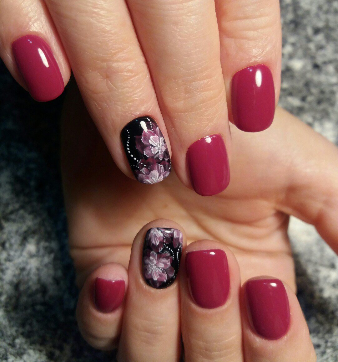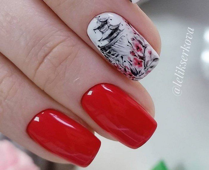- Cerisier manucure avec des motifs.