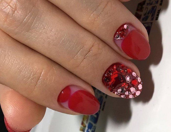 Peut-être qu'une telle manucure devrait être décorée avec une petite quantité de strass. Par exemple, faites un motif de cailloux ou de bouillons sur un ou deux ongles.