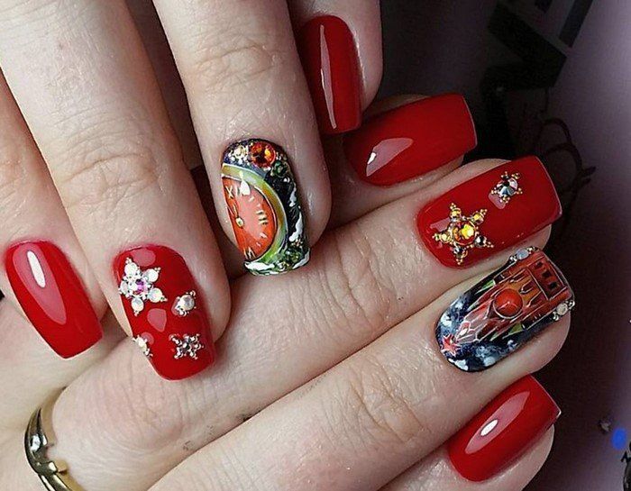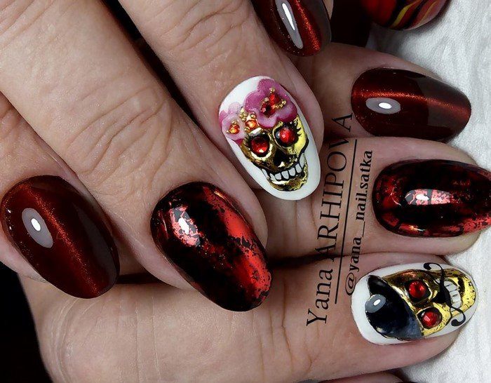 Et en complétant une telle manucure avec diverses solutions de design ou dessins, vous obtiendrez un look festif unique et original. L'essentiel est de ne pas en faire trop avec le décor, les strass et les paillettes.