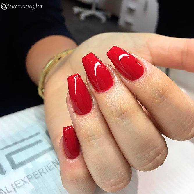 Le débordement de la finition brillante dans la conception des ongles a été et reste à la mode. Une manucure cerise brillante est particulièrement attrayante. Le jeu de gloss met en valeur la beauté, la polyvalence et la richesse des nuances de rouge.