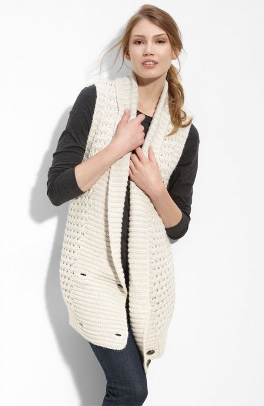 Gilets tricotés pendant une longue période ne ressemblent pas à des rustiques, car dans leur style, les modèles modernes sont plus évocateurs de vestes sans manches. Ces modèles sont particulièrement utiles au printemps et à l'automne, lorsque vous ne souhaitez pas porter de veste chaude au bureau. Dans ce cas, un gilet en tricot remplit deux fonctions à la fois: il préserve la chaleur et le confort et ajoute de l'austérité à l'image de la femme. Un gilet en tricot combiné à un chemisier blanc constitue une excellente alternative à un costume de bureau. Même les plus ardents gardiens des lois du code vestimentaire se permettent de porter des gilets en tricot pour le travail. Beaucoup de femmes essaient de diluer l'arc commercial avec un produit brillant, alors pourquoi ne pas attribuer ce rôle à un gilet en tricot brillant qui transforme l'image de travail.