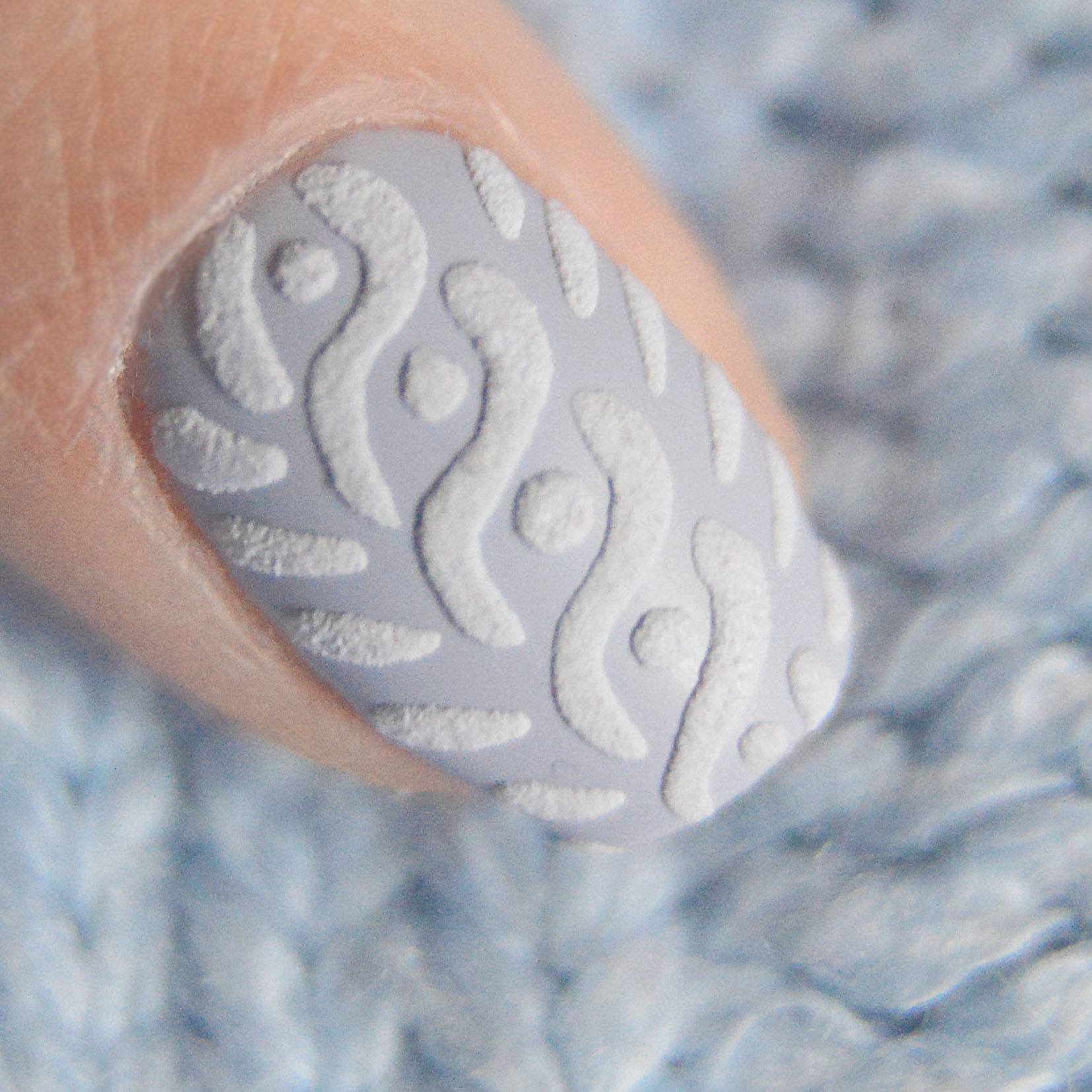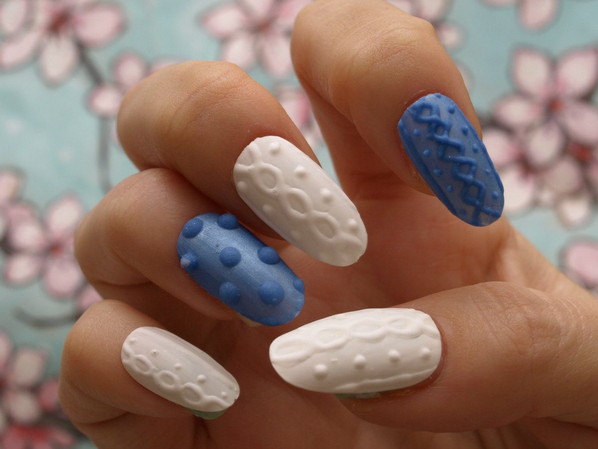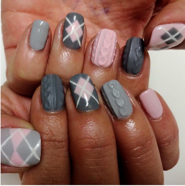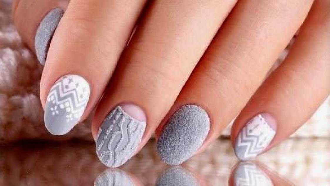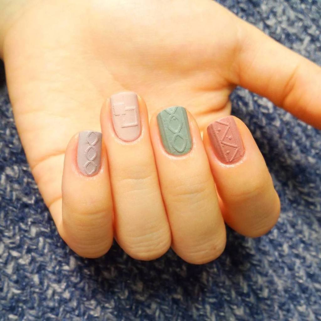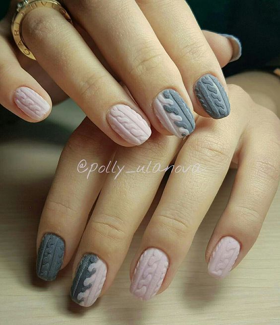 Manucure tricotée avec du sable ou de la poudre.