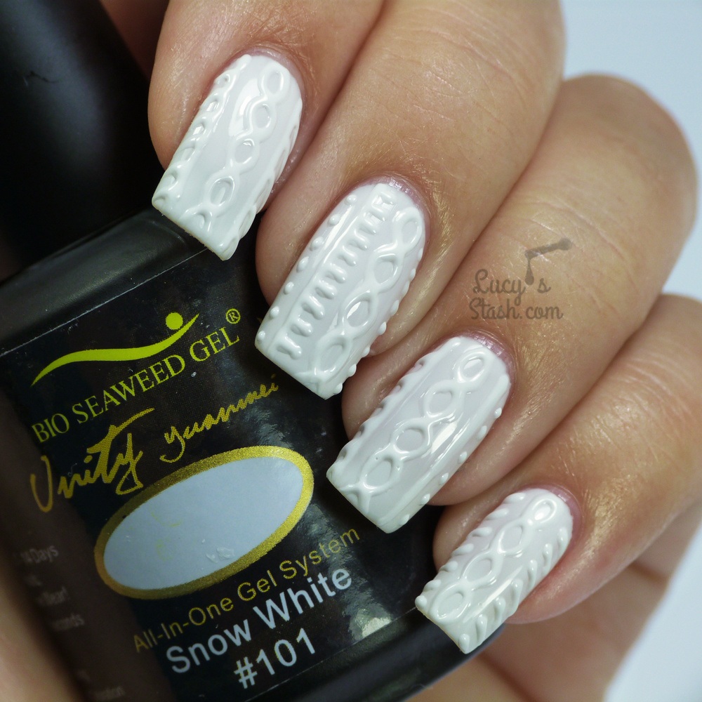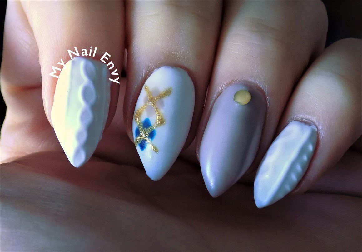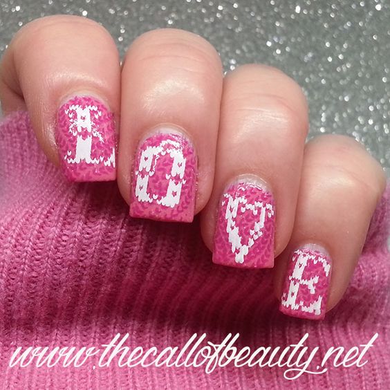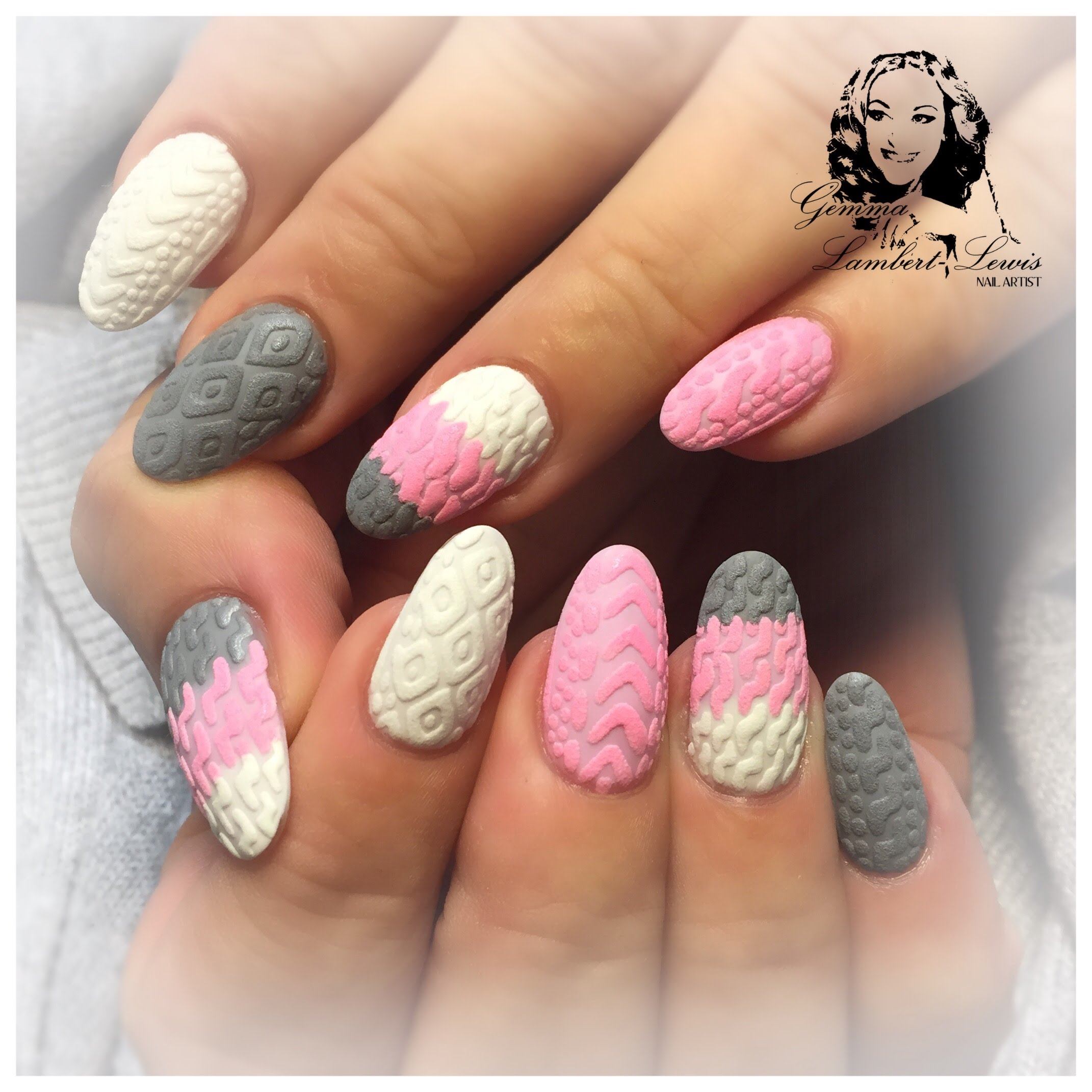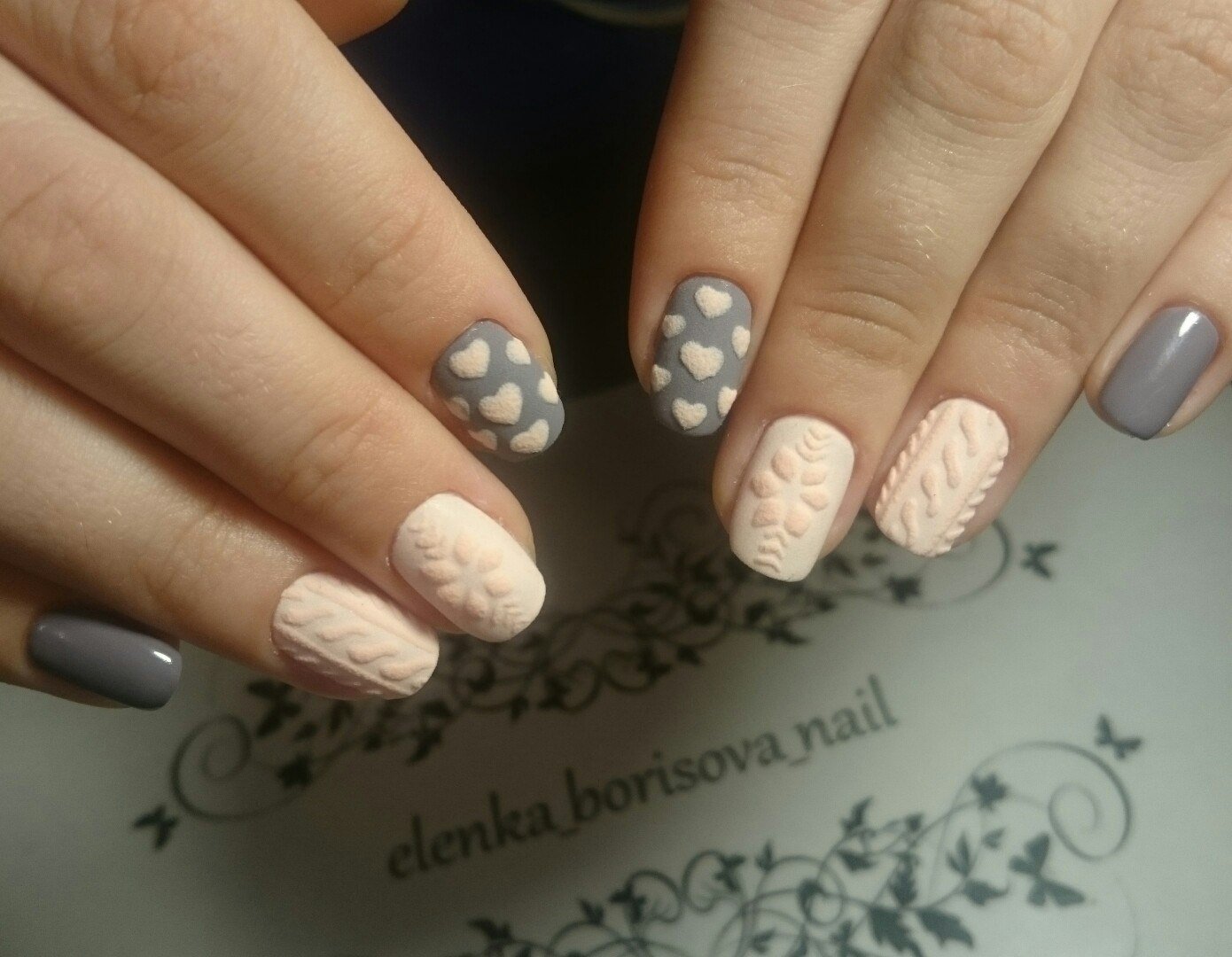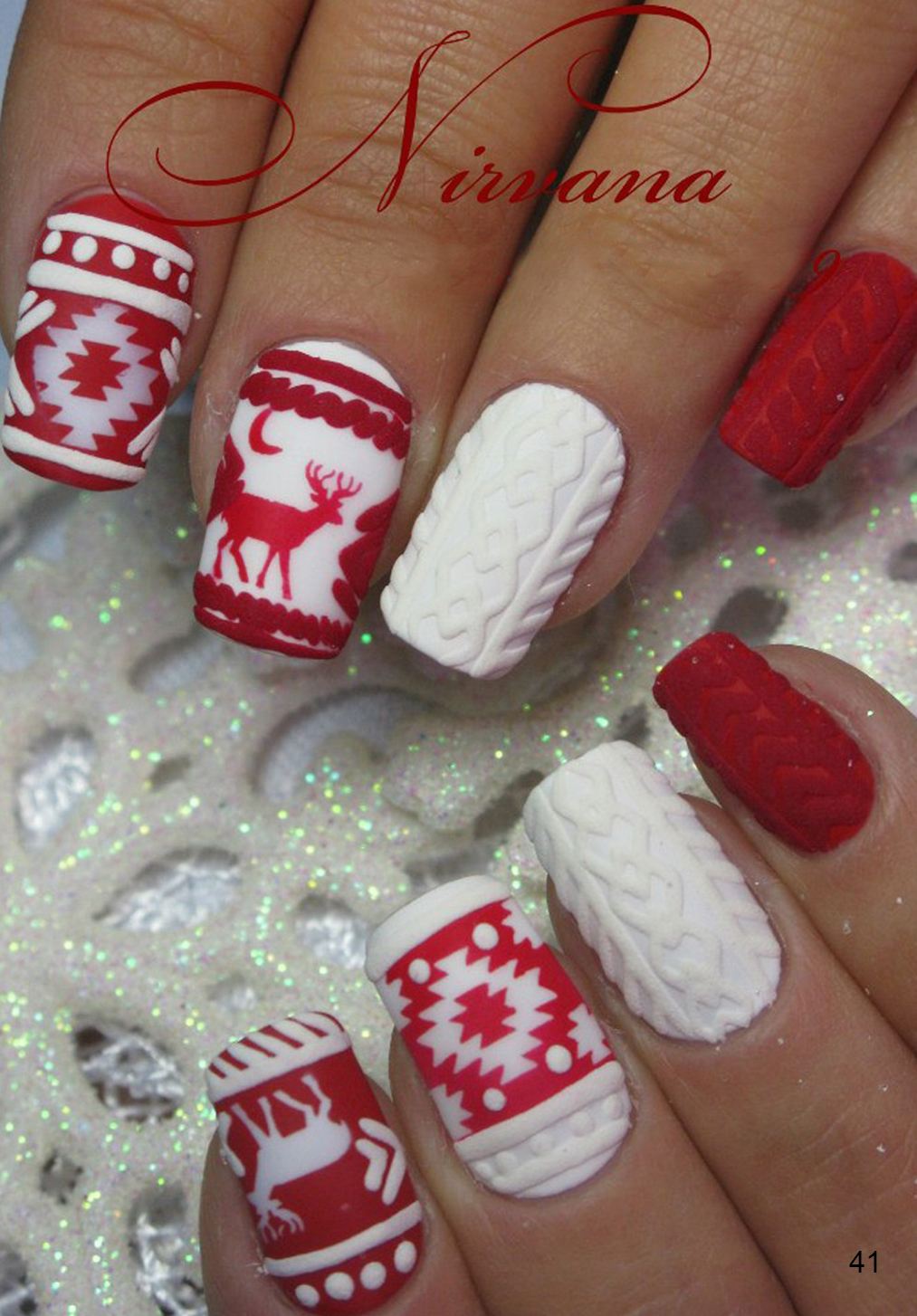 Manucure tricotée avec du sable ou de la poudre.