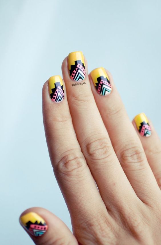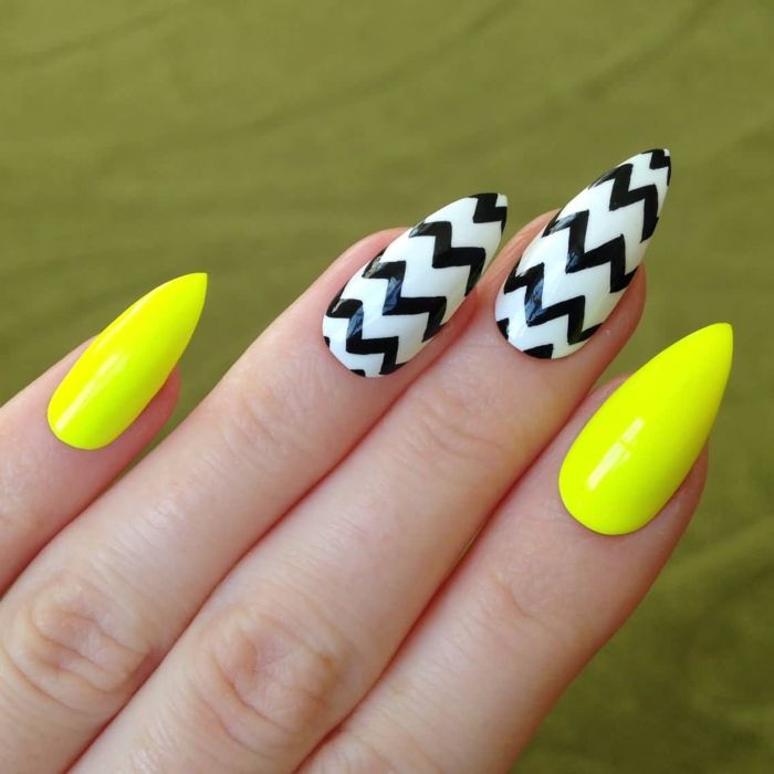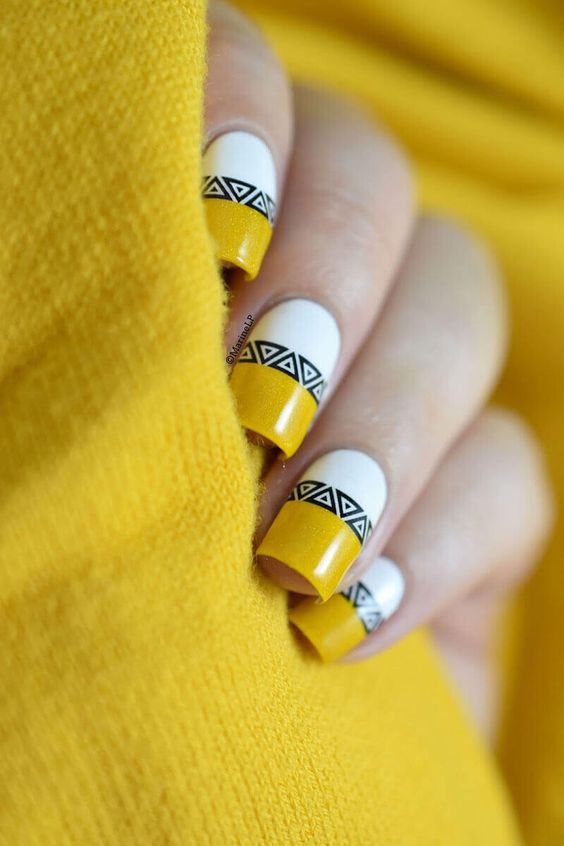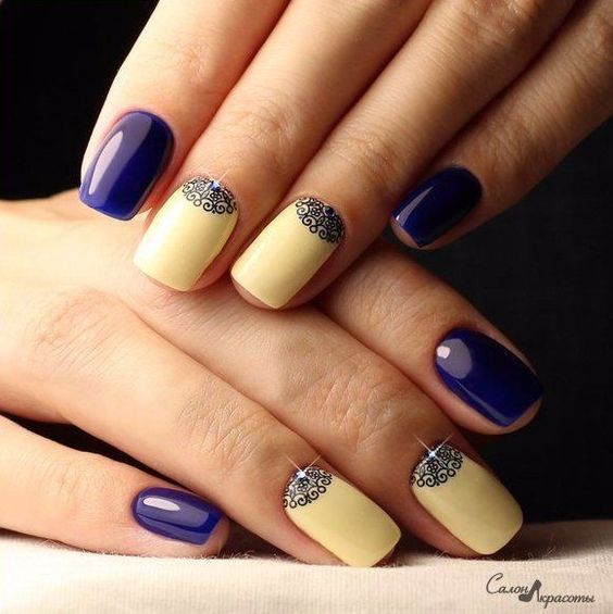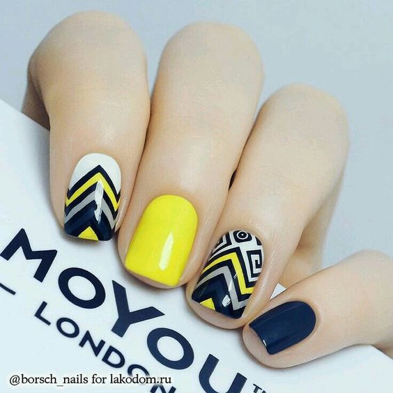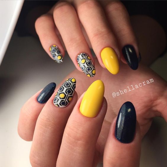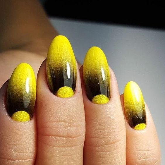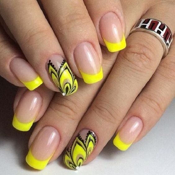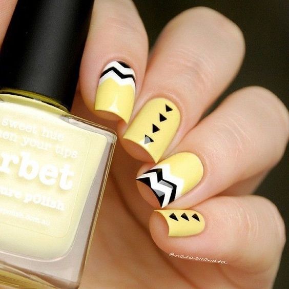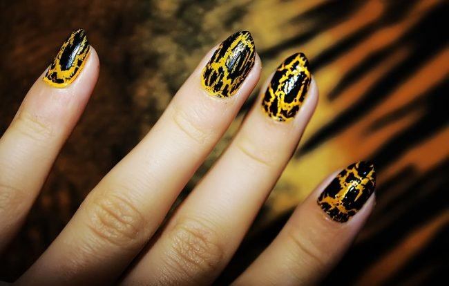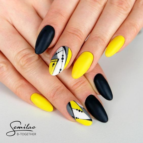 Pour créer une manucure brillante et efficace, vous devez choisir les bonnes couleurs. La combinaison du noir et du jaune est parfaite pour cela. Mais en fonction de la nuance de jaune, vous pouvez rendre le dessin à la fois léger, délicat, du soir ou même strict. Bien sûr, le rôle est joué par un décor supplémentaire, ainsi que par la présence d'un motif sur les ongles.