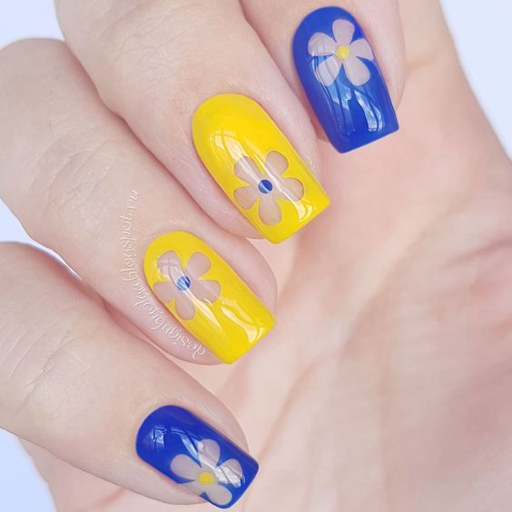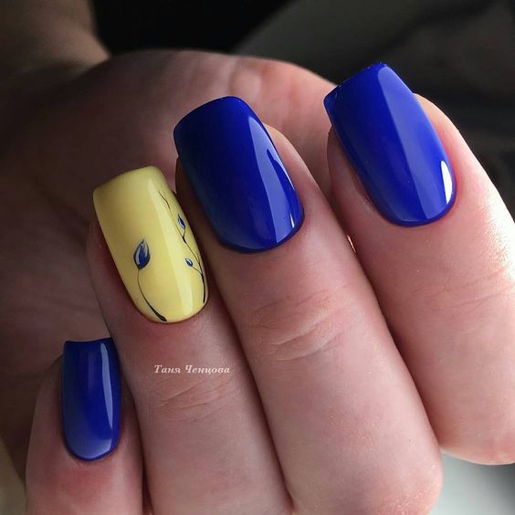 Une des combinaisons de couleurs les plus populaires est le jaune avec le bleu ou le bleu. Cependant, vous devez sélectionner ces nuances avec une extrême prudence. Ils doivent être d'égale saturation et ne doivent être que froids ou chauds. Sinon, la conception peut ne pas sembler très pertinente.