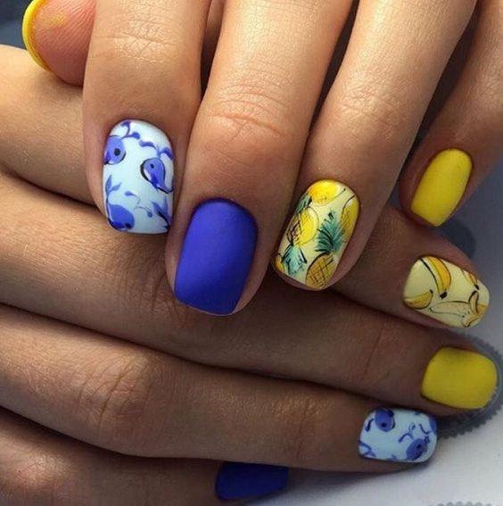 De plus, cette couleur est parfaitement combinée avec d'autres, ce qui vous permet de créer un modèle de manucure encore plus universel. Tout d’abord, les tons chauds tels que l’orange, la turquoise et le rose lui vont particulièrement bien. La couleur jaune dans une combinaison achromatique est également élégante. C'est-à-dire avec le blanc, le noir ou le gris, car ils sont considérés comme neutres. Il existe d'autres options qui ne sont pas moins élégantes.