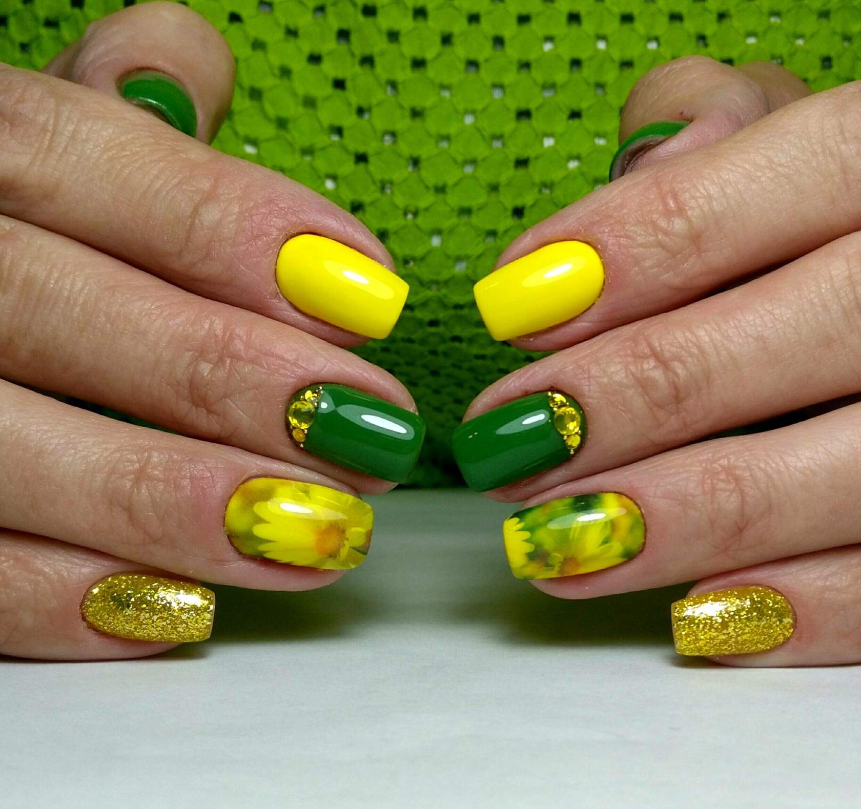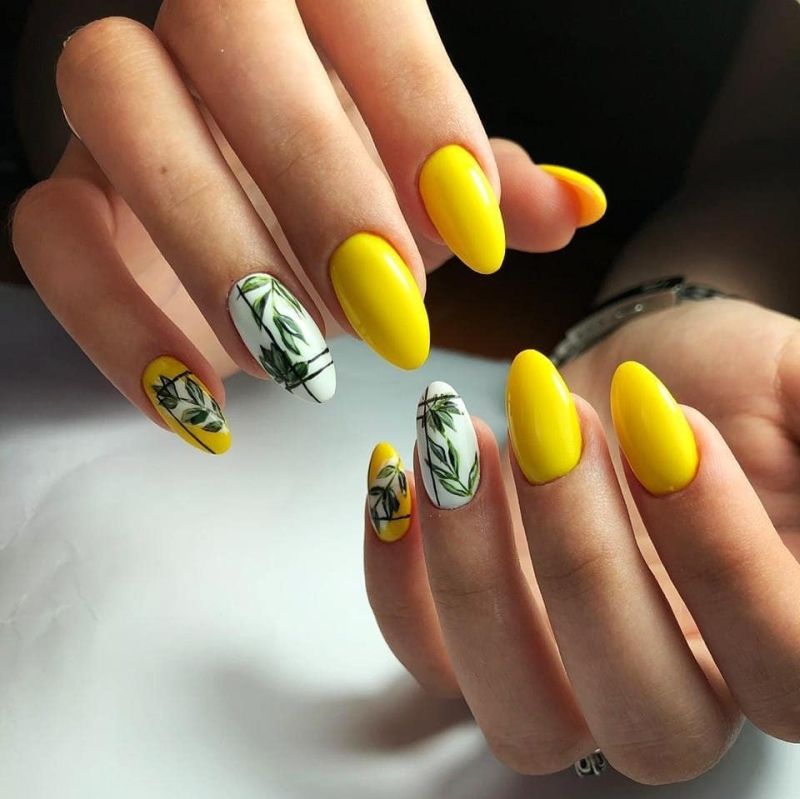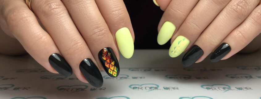 - Manucure jaune avec vert