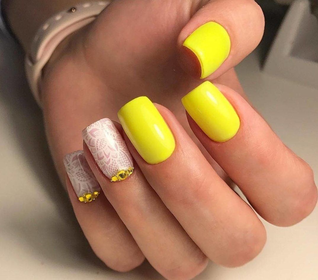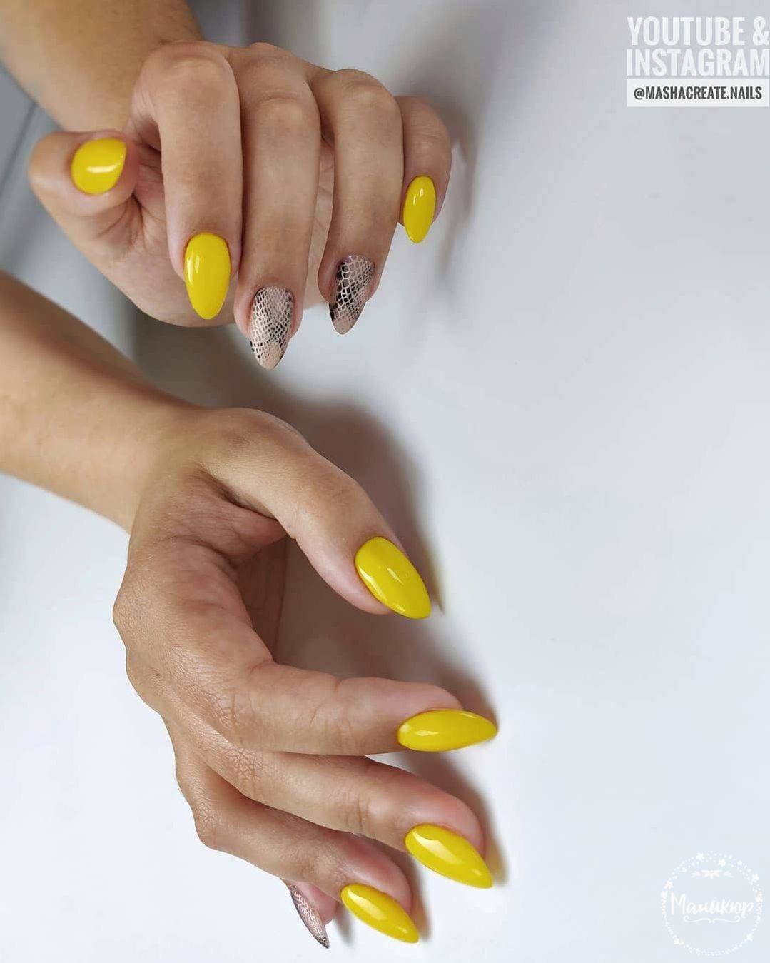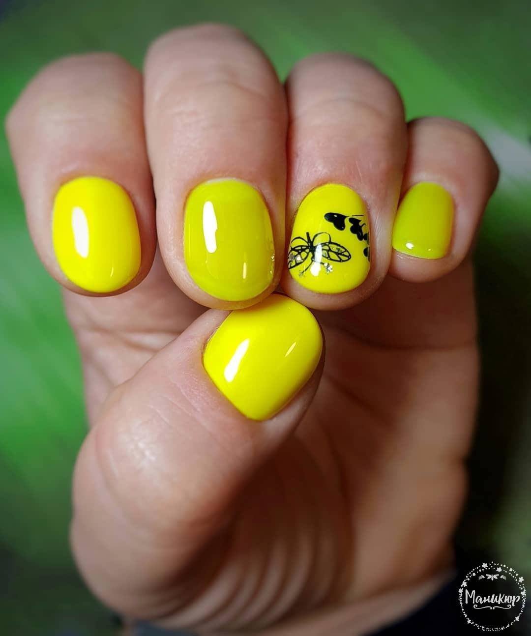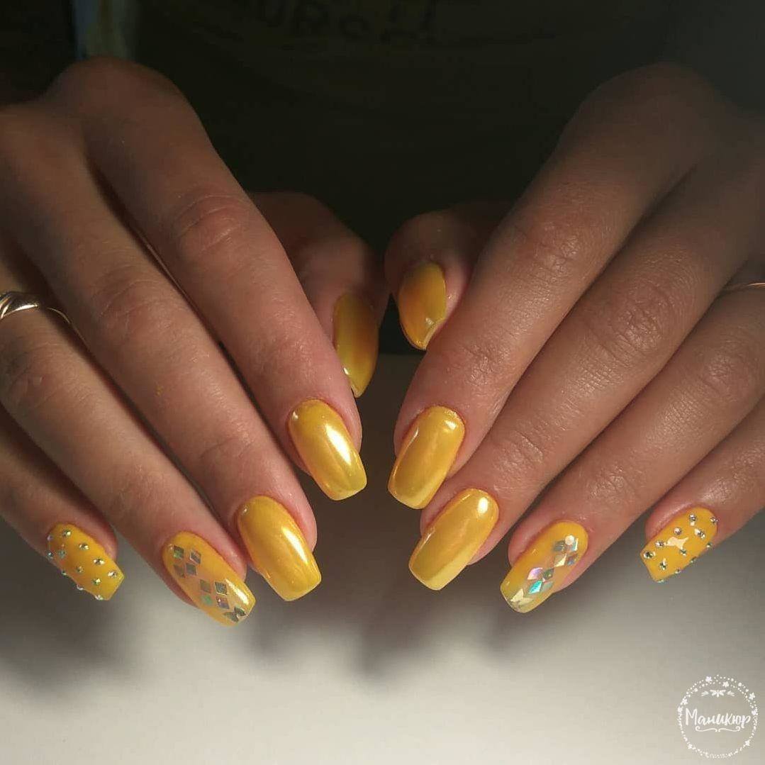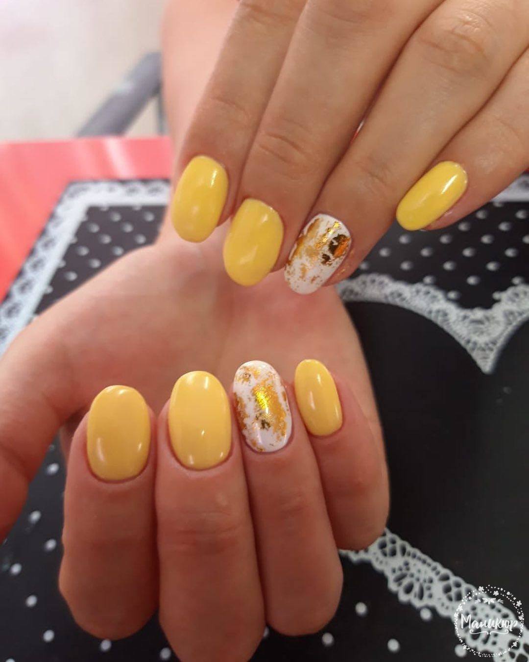 Motifs lumineux de nail art à la mode: manucure jaune - 2026