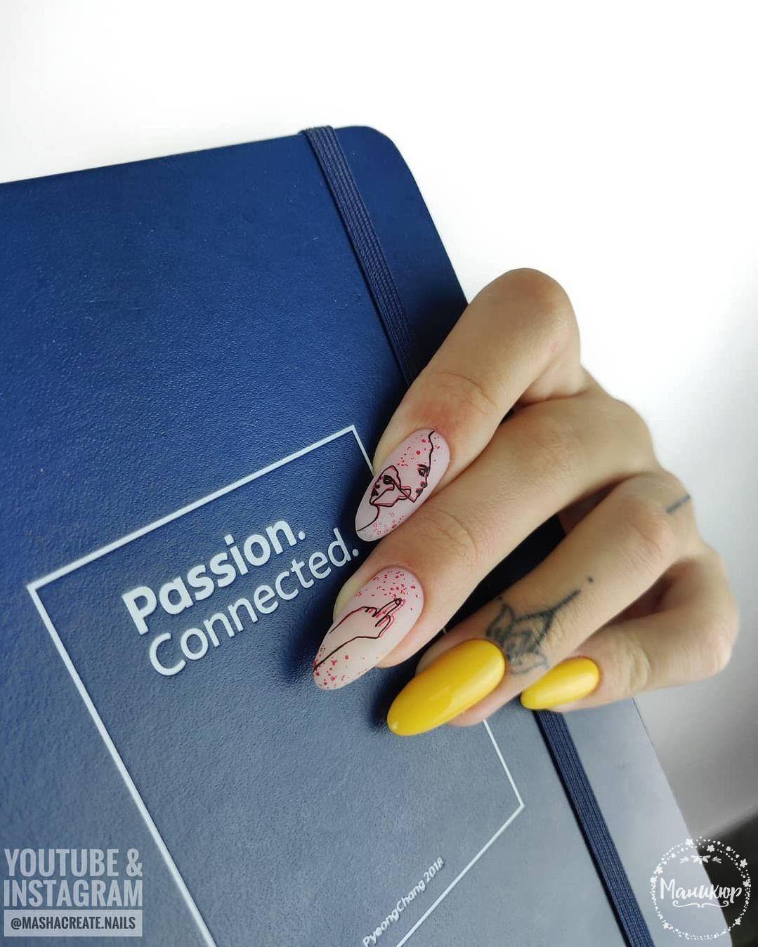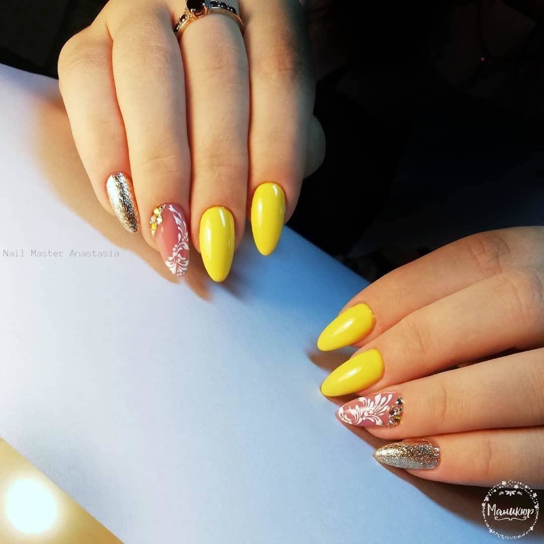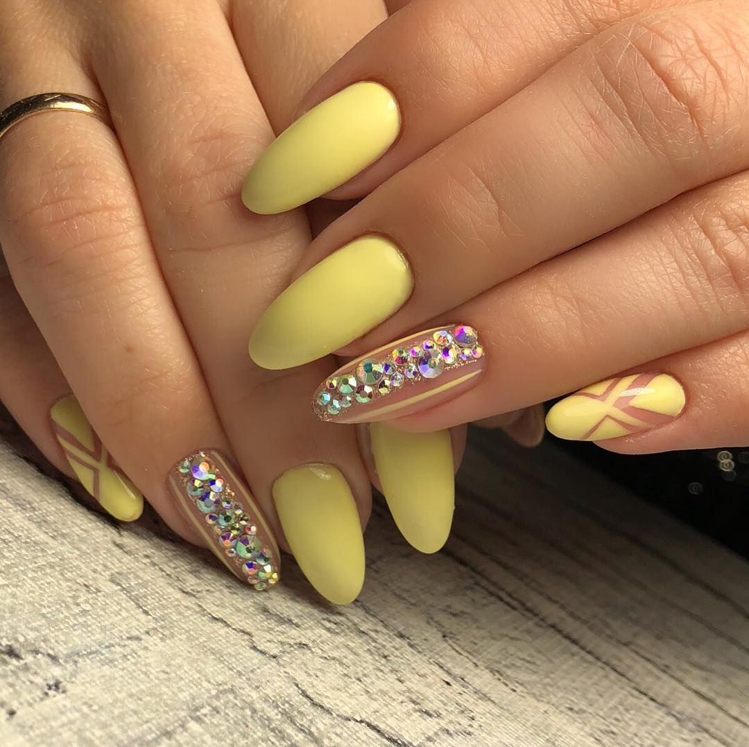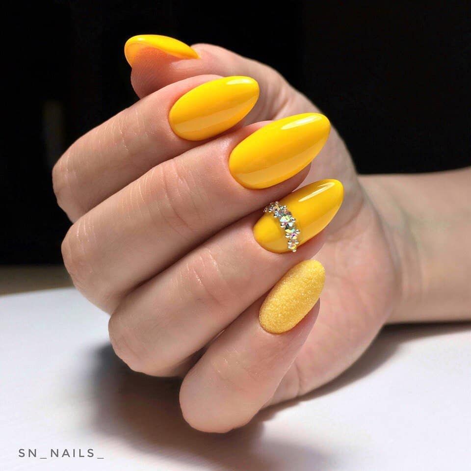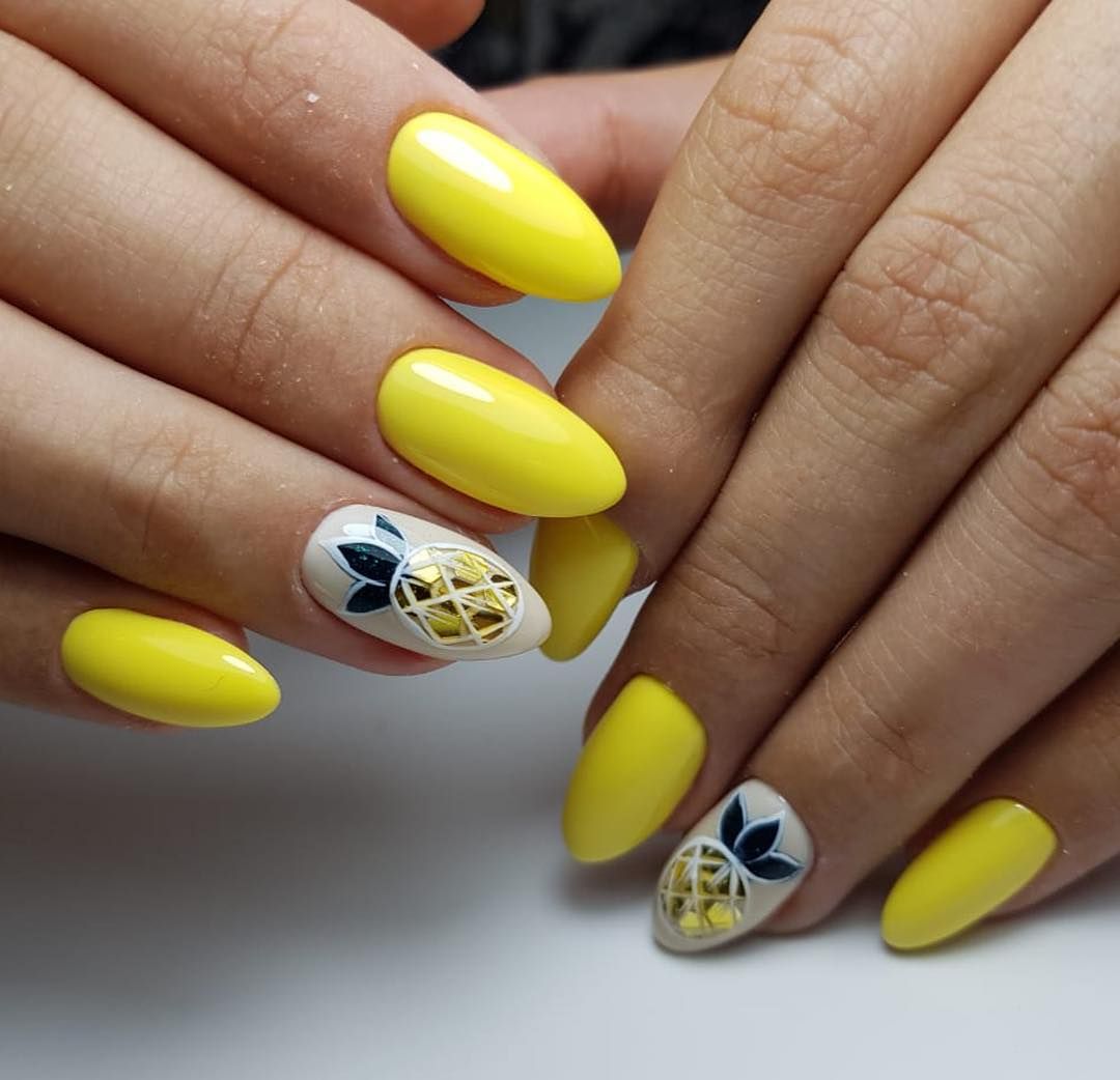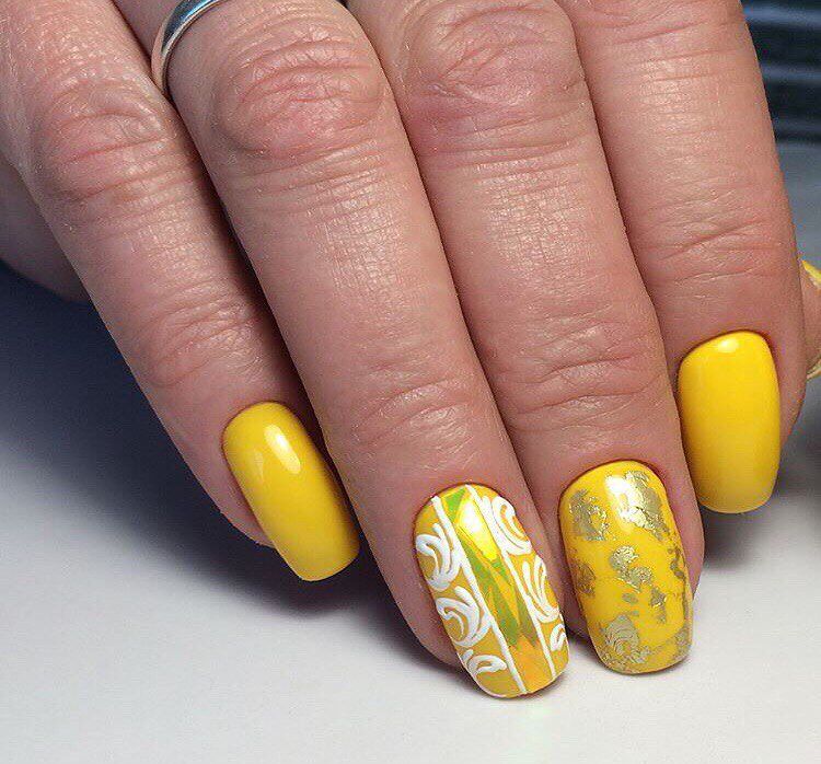 Motifs lumineux de nail art à la mode: manucure jaune - 2026
