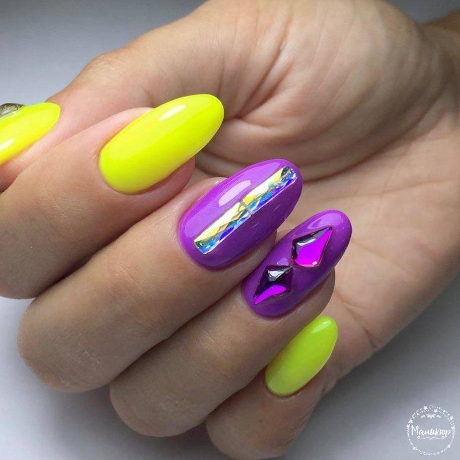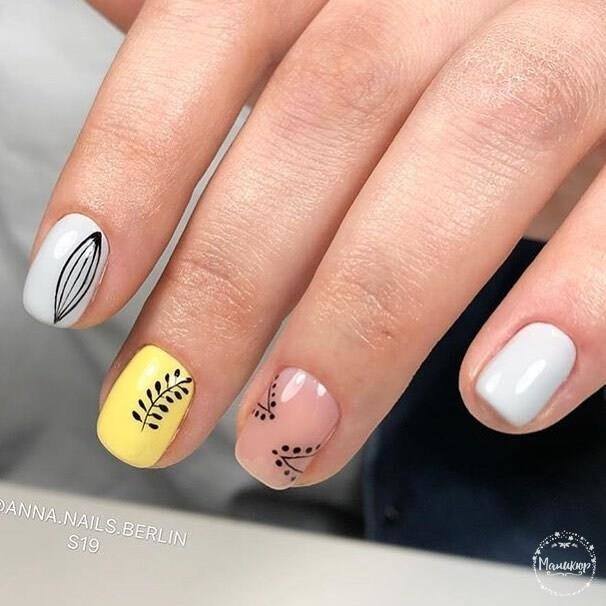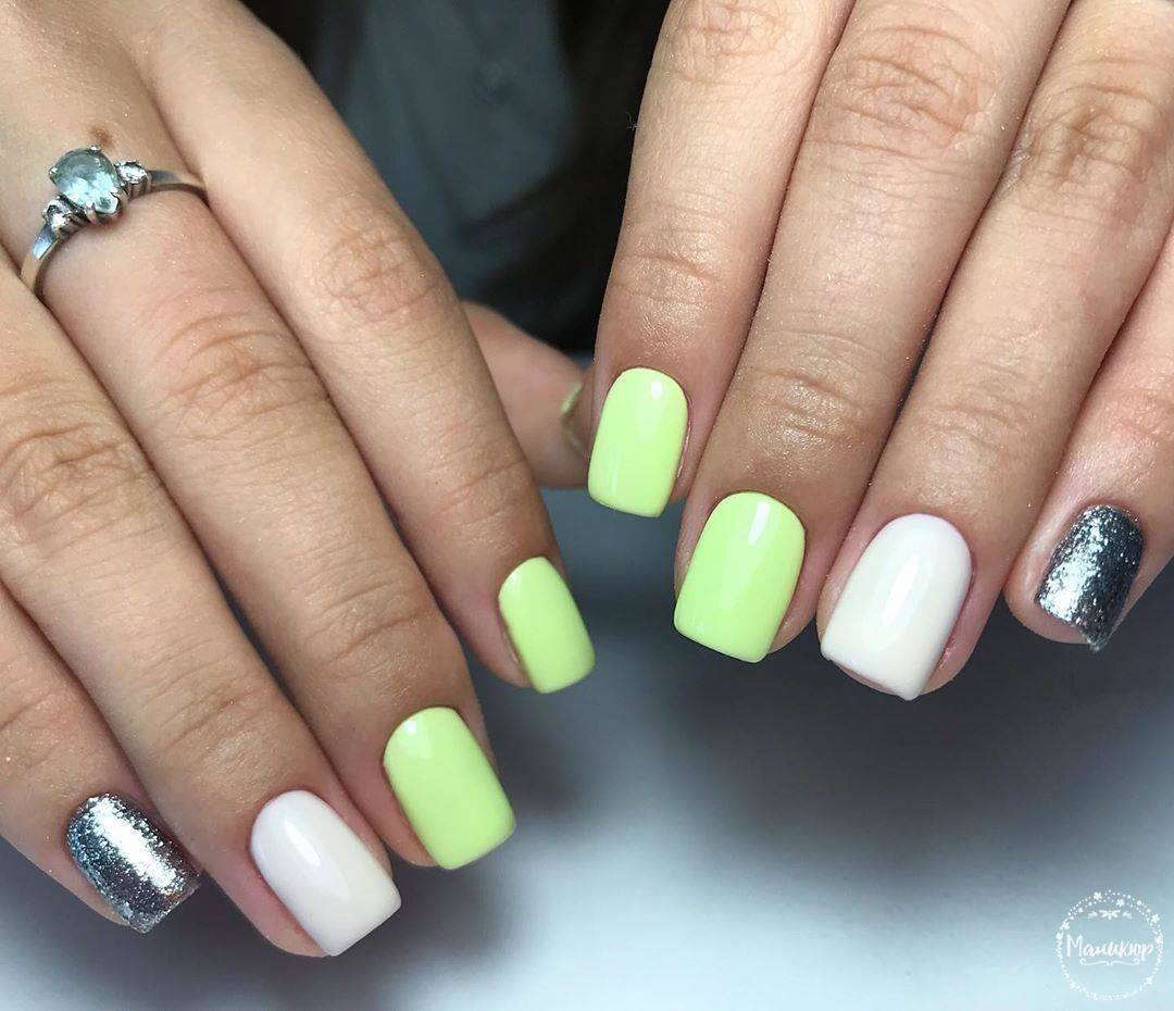 La combinaison de plusieurs couleurs dans une manucure est particulièrement utile en été. Une teinte jaune juteuse et jaune vif peut parfaitement remonter le moral et faire face à la tristesse. La combinaison de manucure jaune-vert convient à toutes les longueurs et formes des ongles. La gradation des tons et des nuances de ces couleurs est incroyablement large. Il comprend des couleurs telles que le vert clair, le citron, les marais, le beige, ainsi que des nuances plus douces et saturées. En ce qui concerne les méthodes de conception, vous pouvez appliquer n'importe quoi: perles, dessins, étincelles, motifs ou strass. Choisissez un décor à votre goût!