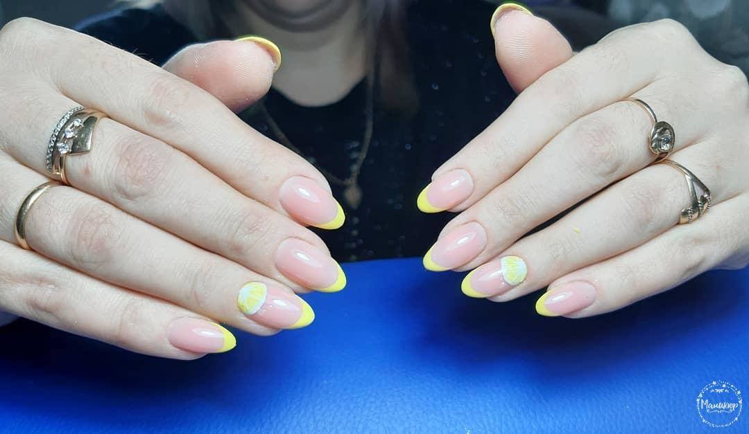 - Manucure jaune sur ongles courts