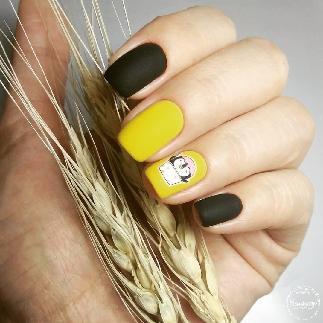 Manucure jaune élégante avec l'ajout de noir