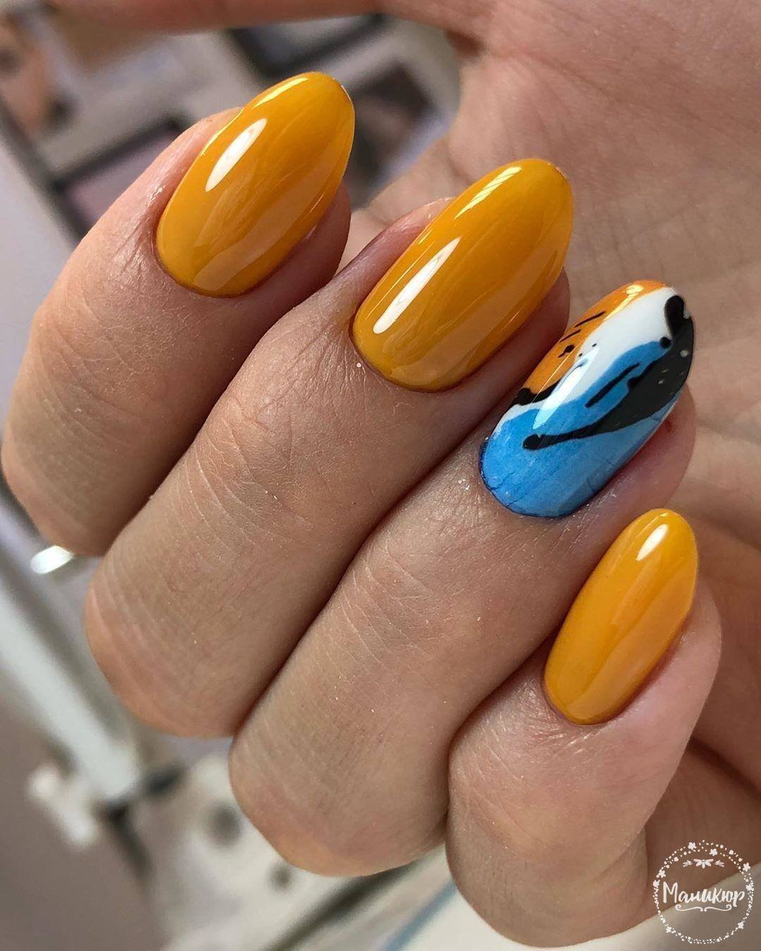Les options les plus élégantes et les plus élégantes pour la manucure jaune en 2026 sont combinées de manière inégalée avec le vernis orange. Malgré le fait que ces deux couleurs soient similaires, elles sont incroyablement différentes et peuvent transformer le nail art en une véritable œuvre d'art. Les couleurs jaunes juteuses complètent parfaitement le ton orange calme et vice versa.
