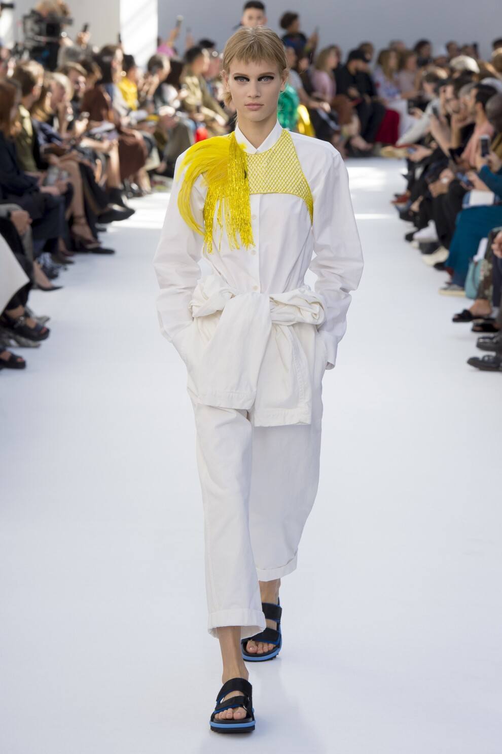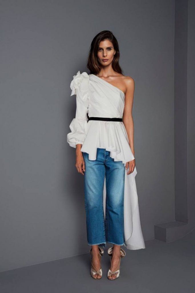 Ce style est considéré comme le plus polyvalent, car le modèle est plutôt élégant et indépendant. Une telle blouse doit tout simplement être le centre d'attention de l'image globale. Mais à cause de cette texture de chemisier, il est difficile de la combiner avec une veste, un cardigan. Malgré cela, cet élément essentiel de la garde-robe se marie bien avec un jean boyfriend déchiré, un jean de coupe classique, un pantalon slim et ample.