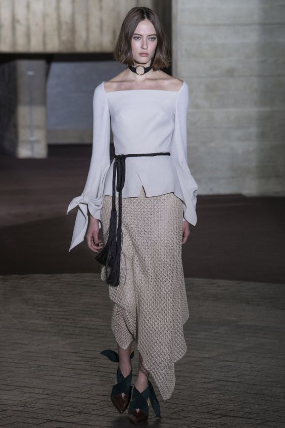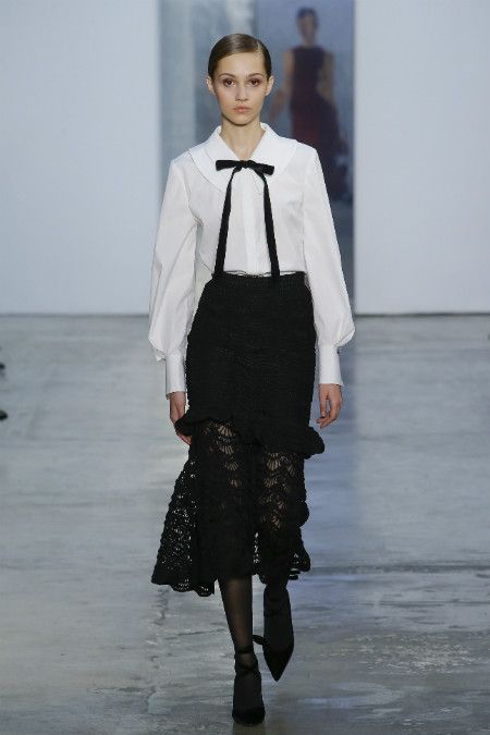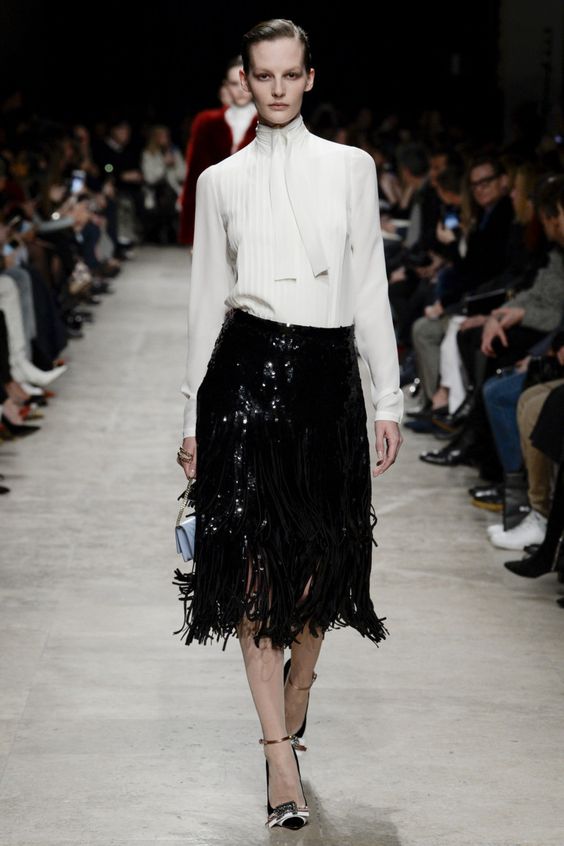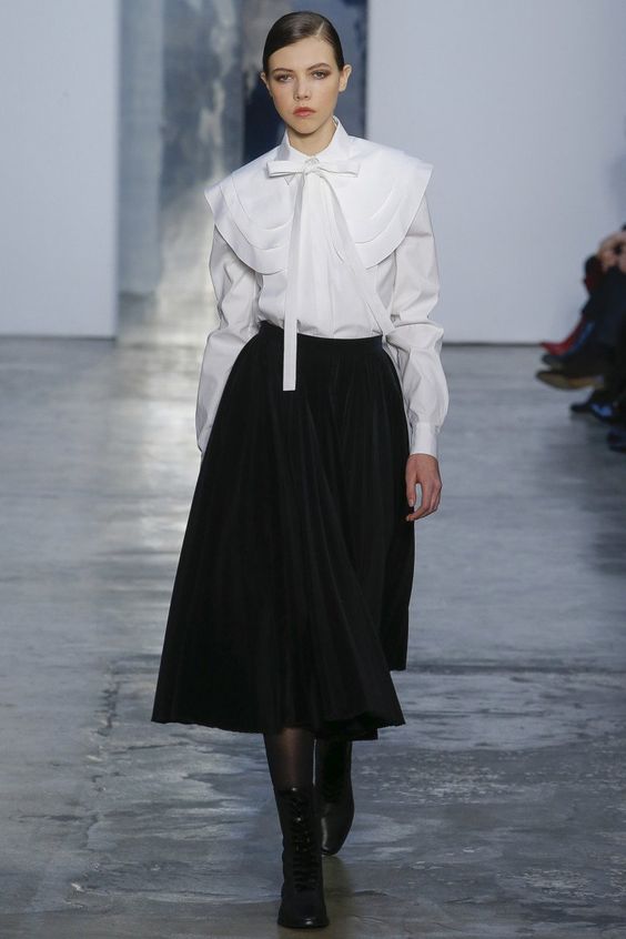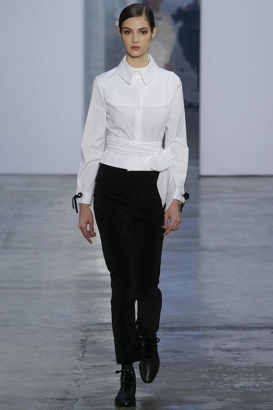En automne-hiver, une blouse blanche sera utile. C'est une sorte de classique, toujours à la mode. Néanmoins, les concepteurs ont présenté des options plus originales. Par exemple, les chemisiers aux épaules ouvertes, avec un décor en forme de dentelle, de manches volumineuses ou de volants. Chacun d'eux a l'air intéressant et inhabituel.