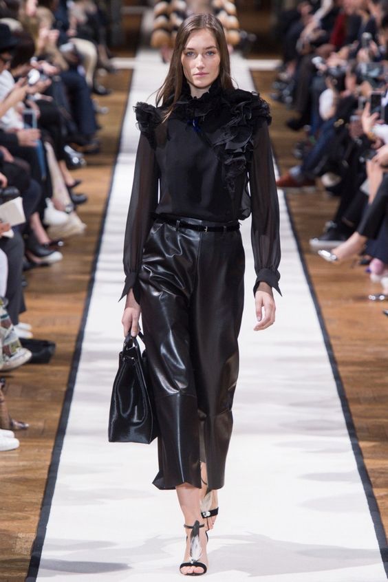 Ceux qui préfèrent porter des vêtements inhabituels sont invités à examiner de plus près les chemisiers en cuir. Bien sûr, tout le monde est habitué au fait que ce matériau est le plus souvent utilisé pour créer des chaussures, des vêtements de dessus et des accessoires. Mais cette année, les designers ont présenté des produits vraiment originaux. Cette option n'est certainement pas adaptée à la vie quotidienne. Un chemisier à un événement serait beaucoup plus approprié. Croyez-moi, dans cette tenue, vous serez certainement à l'honneur.