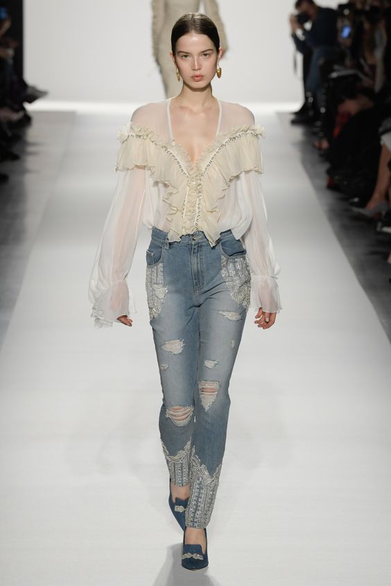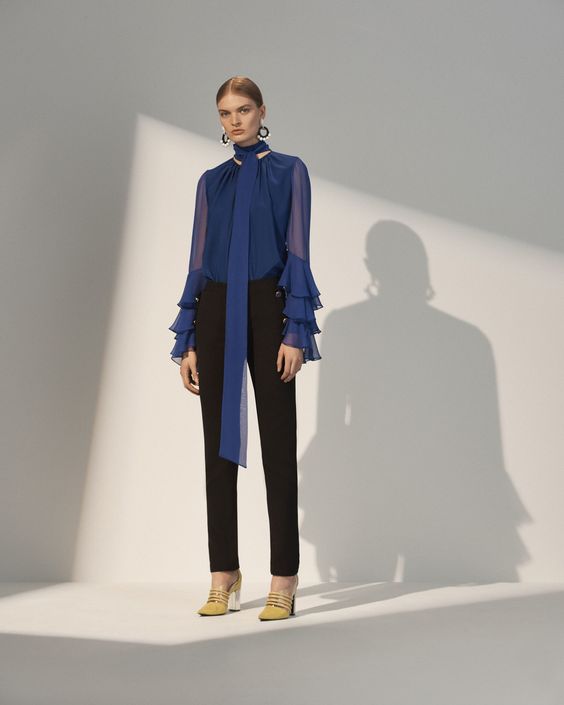 Bien sûr, le minimalisme est présent dans de nombreuses collections de designers célèbres. Mais en même temps, à chaque saison, de plus en plus d'attention est accordée à un style plus raffiné et féminin.Par conséquent, les chemisiers à grands volants et noeuds seront particulièrement pertinents. En raison de cette décision, même la plus simple des images aura une touche de romance.