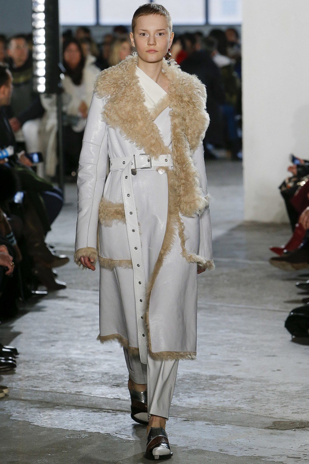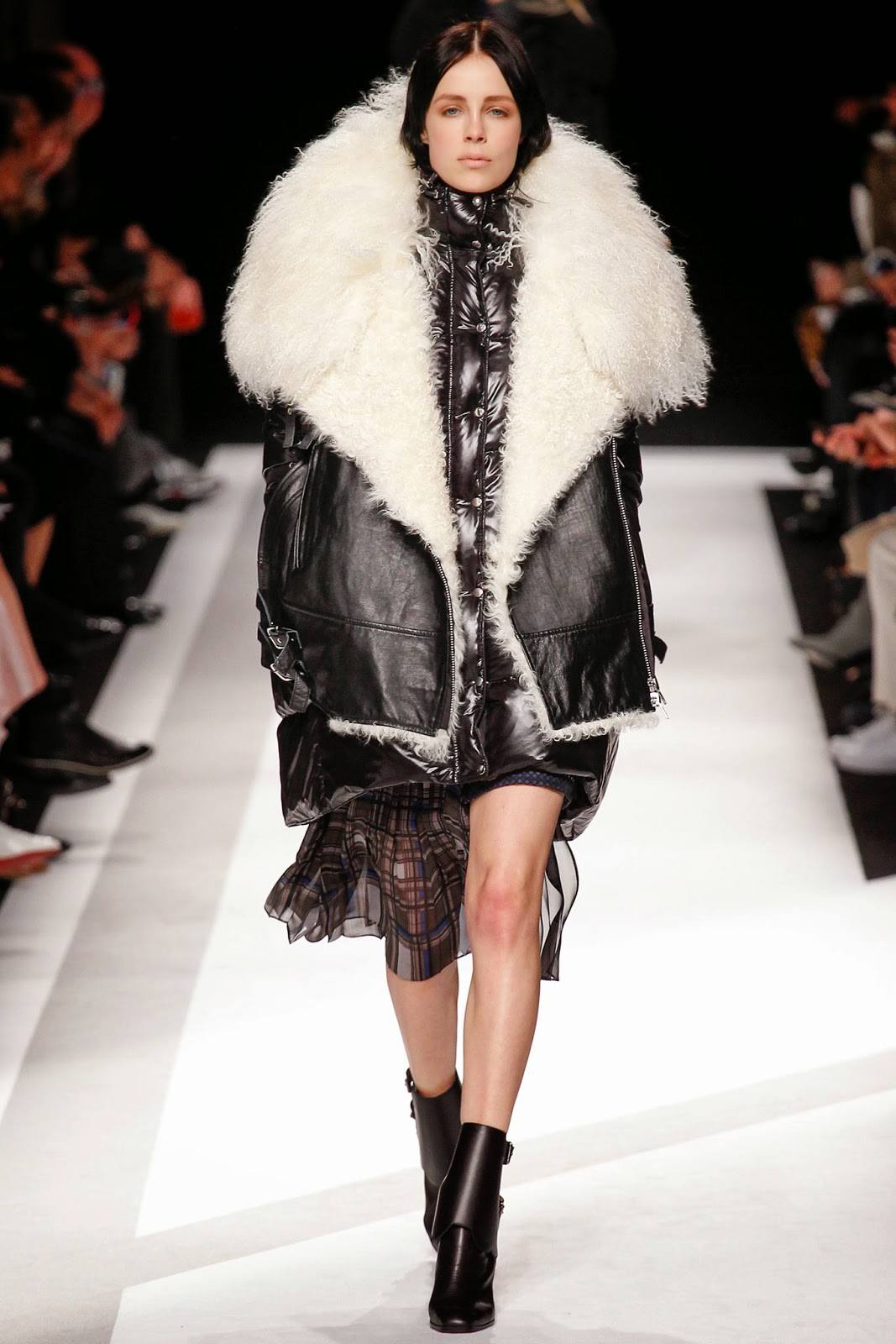 Veuillez noter que cette saison, la cagoule a perdu sa position à la mode, laissant ainsi la place à d’énormes cols en fourrure. Durant la saison automne-hiver, les manteaux en peau de mouton avec col sont universels et peuvent être combinés à différents styles.