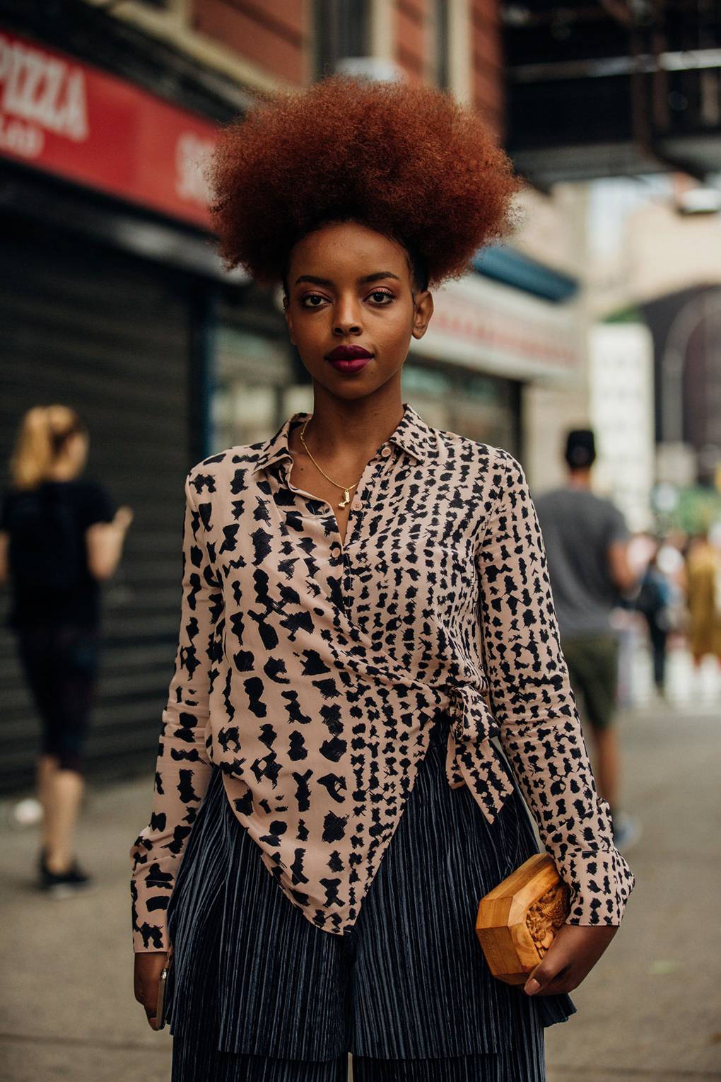 Les pantalons Palazzo sont larges et spacieux. Le plus souvent, ils se trouvent en longueur raccourcie. Cette saison, les pantalons peuvent être en velours, en laine ou en maille épaisse et raffinée. Le pantalon Palazzo va bien à une blouse translucide claire et une veste moulante, une doudoune et un peignoir. Parmi les chaussures, il convient de choisir des chaussures compensées avec un nez pointu.