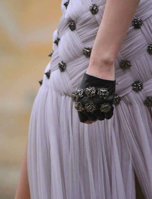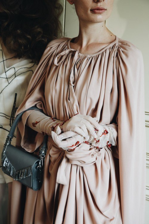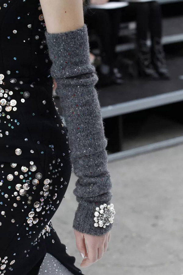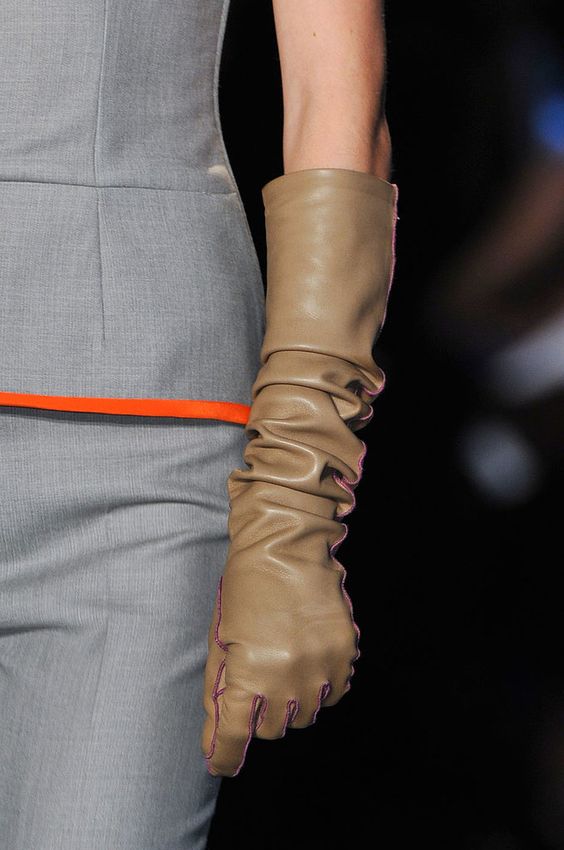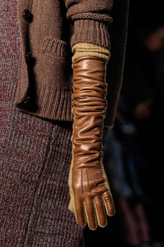 Il est possible de créer une image à la mode en complétant un trench-coat ou un manteau avec de longs gants tricotés. Sur les défilés de mode de la saison automne-hiver 2026, les concepteurs nous ont présenté deux types de gants tricotés. Ce sont des modèles étroits et ajustés, ainsi que des gants à plis volumineux au poignet. Faites attention aux gants décorés avec des strass et divers laçage. Avec ces modèles, vous pouvez facilement créer un look élégant et attrayant par temps froid. De nombreux designers se sont concentrés sur la version combinée du gant tricoté et du cuir.