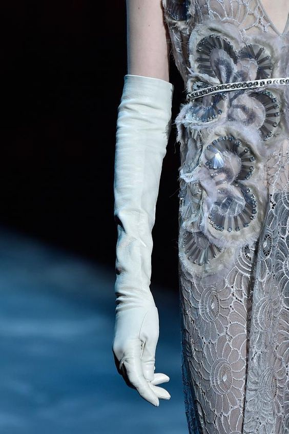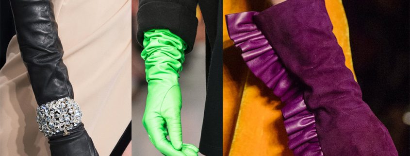Les concepteurs conseillent de choisir des gants allongés en automne-hiver pour créer un look élégant - un modèle allant jusqu'au coude ou plus. De tels gants sont merveilleusement combinés avec des vêtements de dessus une ligne, avec une cloche à manches larges, sans manches et même avec un cocktail ou une robe de soirée sans manches.
