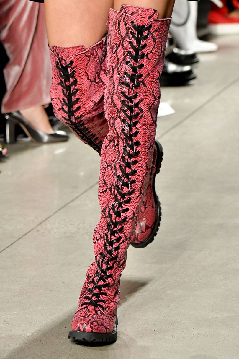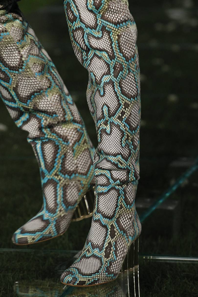 Les modèles originaux avec des imprimés en forme de peau de bête occupent une position dominante depuis plus d'une saison. Les créateurs proposent en 2026 des modèles de bottes avec des empiècements léopard, des zébrures ou des empiècements en cuir de reptile. Les bottes aux empreintes de peau de crocodile ou de serpent deviendront populaires. Dans la saison automne-hiver de 2026, dans la tendance, des bottes de nuances proches de la couleur des reptiles dans la nature. Les fashionistas audacieuses sont des bottes imprimées recommandées dans des couleurs vives et des nuances telles que le bleu, le rouge ou le violet.