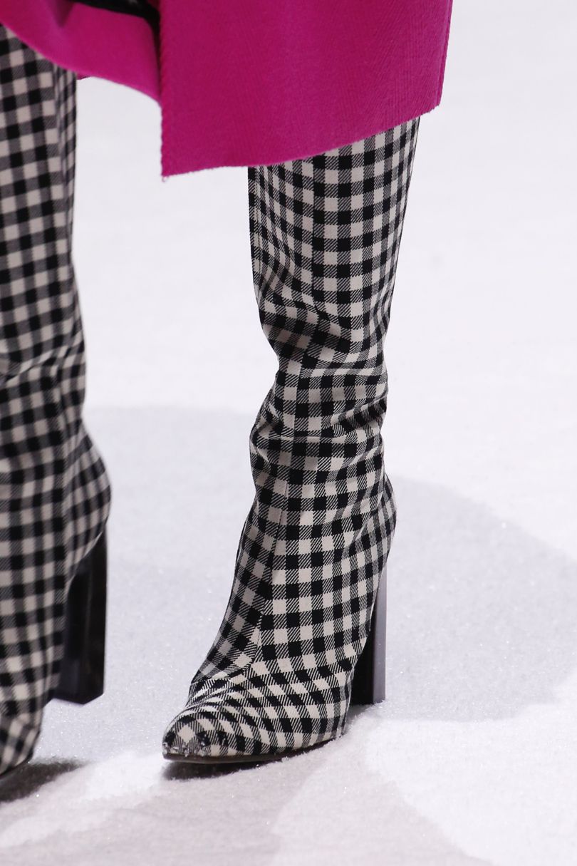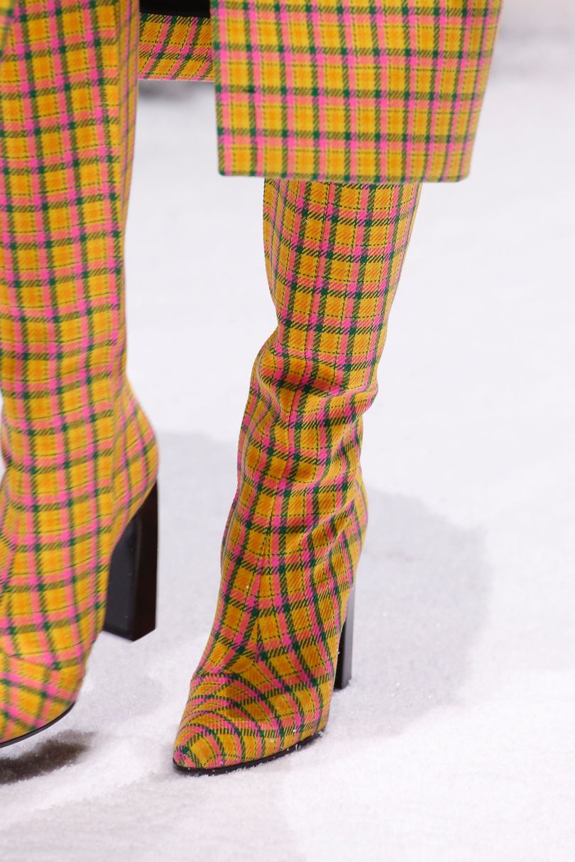 En automne et en hiver, le principal détail d'une garde-robe à la mode est une cage et des imprimés géométriques similaires. Un tel motif est acceptable aussi bien dans les vêtements que dans les chaussures avec accessoires. En 2026, les bottes à carreaux de couleurs juteuses et lumineuses sont particulièrement populaires. Les créateurs de marques ont présenté dans leurs collections de telles bottes dans les tons jaune-orange, rouge vif et même citron.