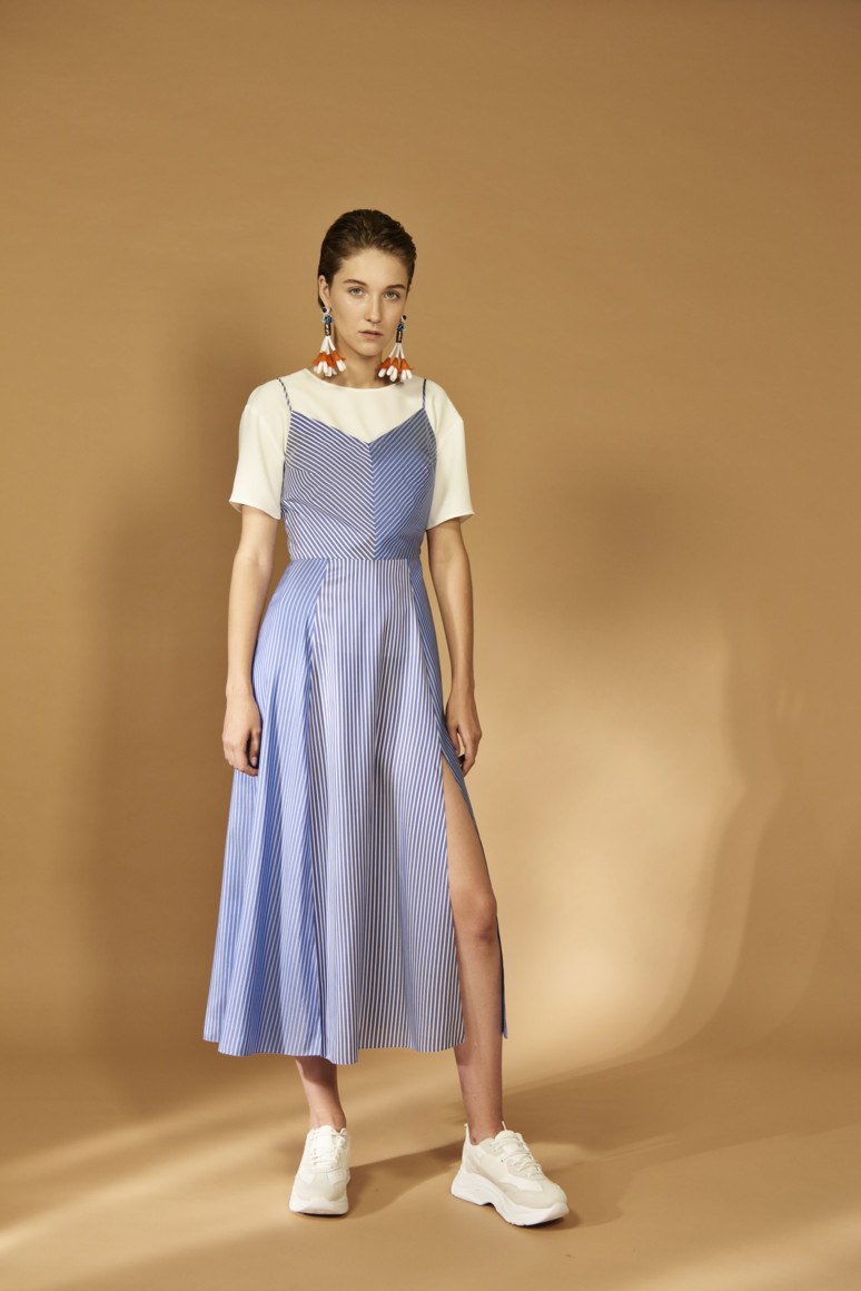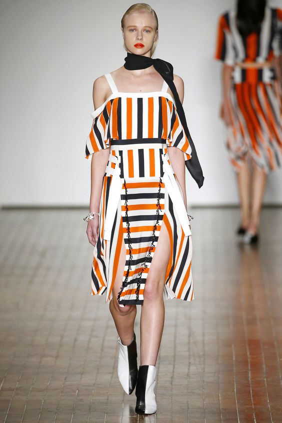 Pour créer une image à la mode, la présence d’une impression joue un rôle important. L'un des tirages pertinents et populaires est une bande étonnante. Les robes légères avec la présence d'une fine bande semblent assez discrètes et élégantes. Il existe de nombreuses combinaisons de nuances de couleurs différentes pour créer le bandeau: rouge-blanc, blanc-noir, jaune-vert, rose-bleu. En 2026, la nuance la plus populaire pour une bande à la mode est un ton bleu et blanc.
