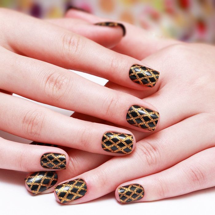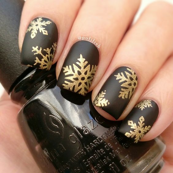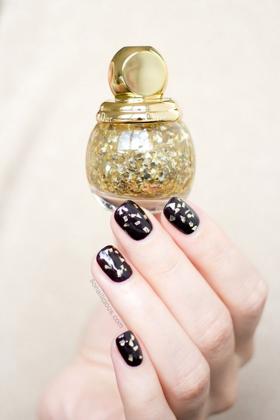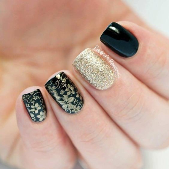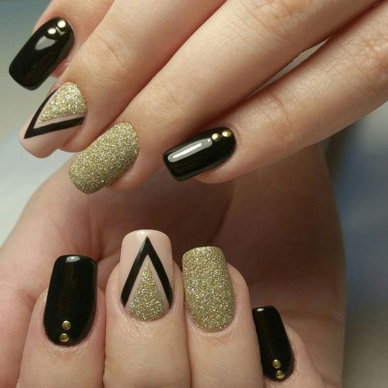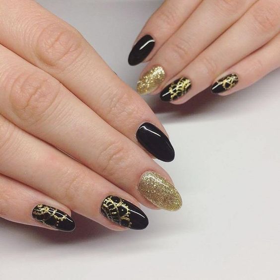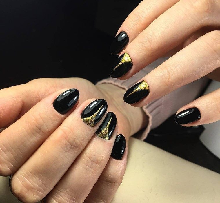 Manucure en couleur noir et or.
