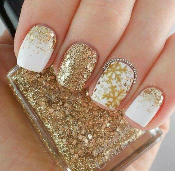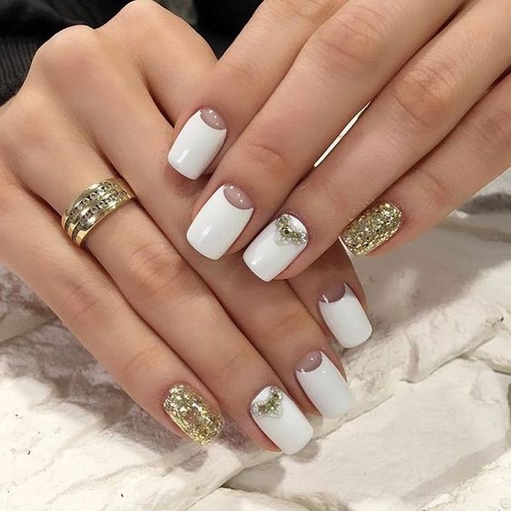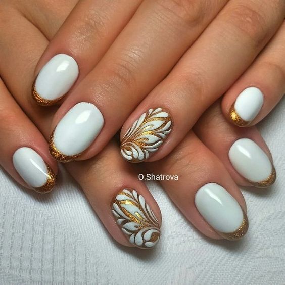 Ongles design en couleur blanche et or.