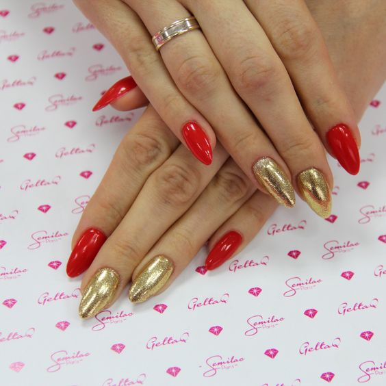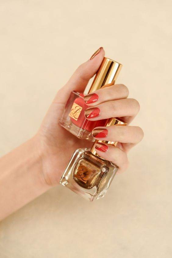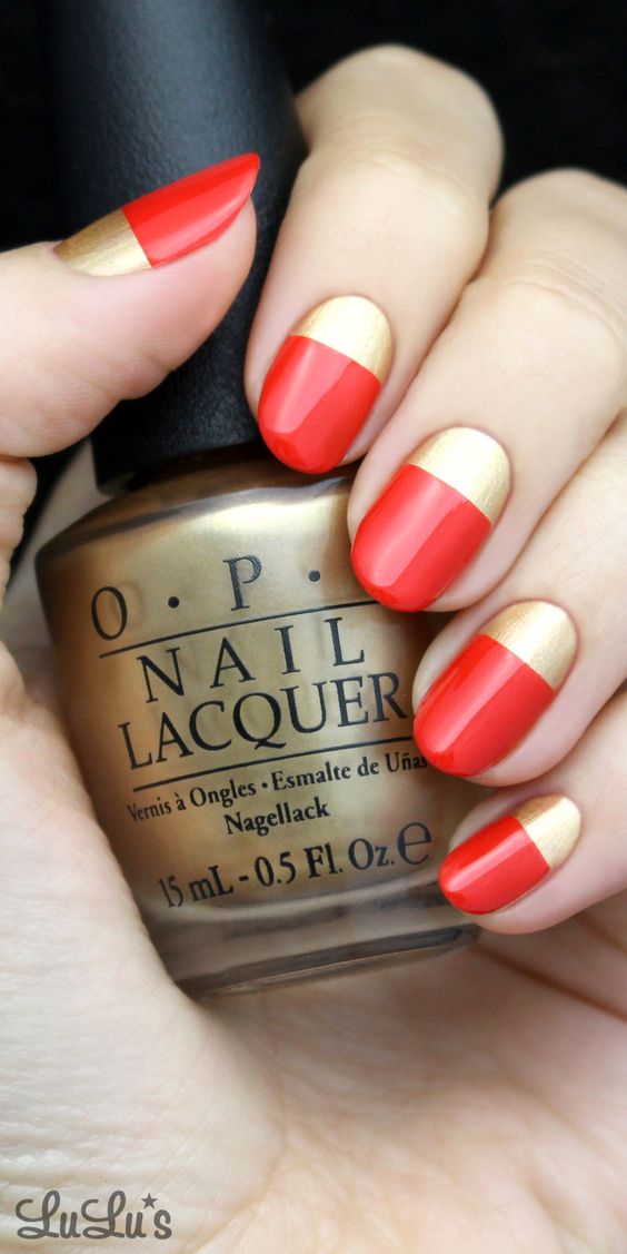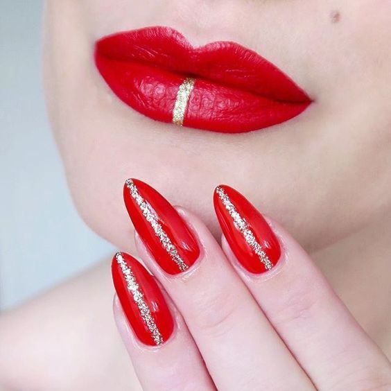 Manucure rouge avec de l'or