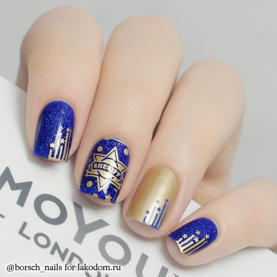 Manucure bleu et or