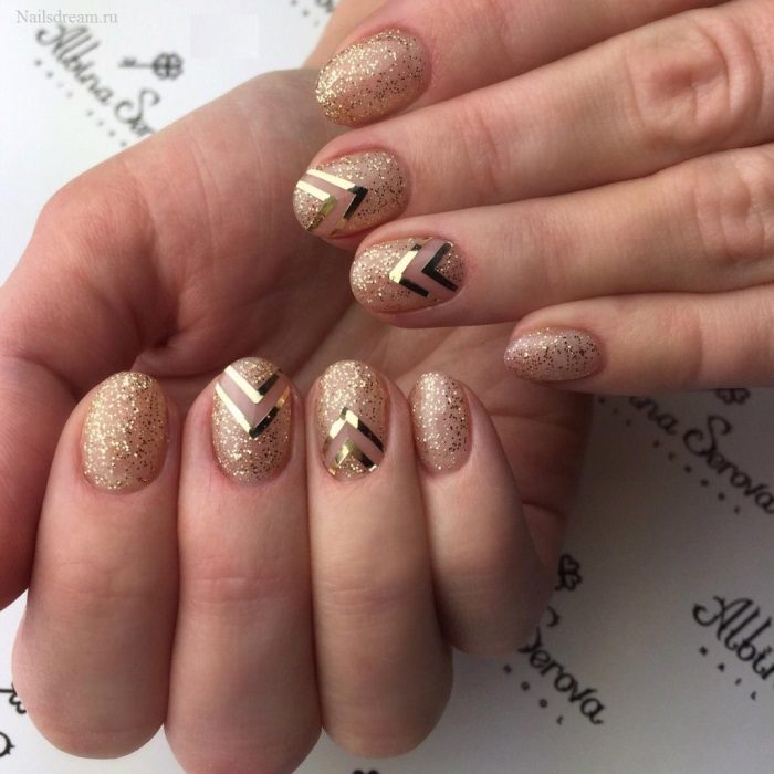 Golden Manicure est une excellente solution pour toutes les filles qui suivent les tendances de la mode. En outre, en fonction de l'intensité, vous pouvez choisir la bonne option pour la vie quotidienne et pour un événement festif.