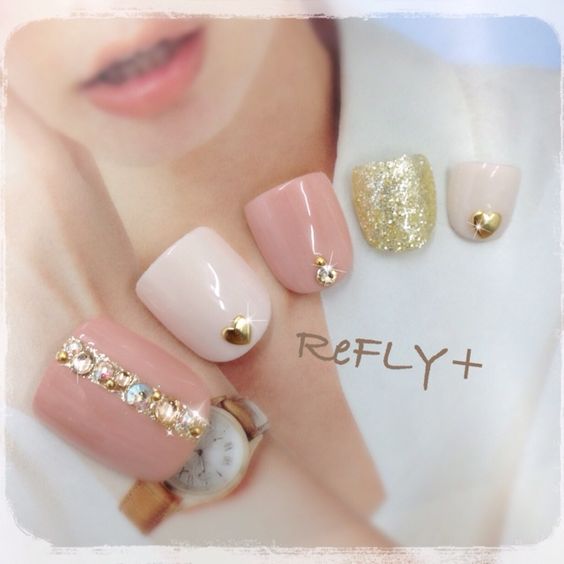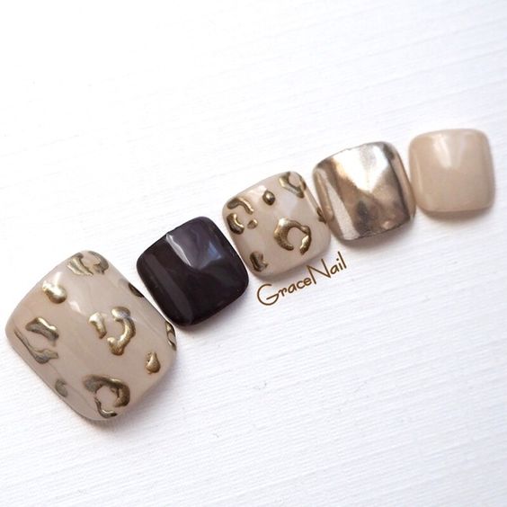 Combinaison harmonieuse de vernis de différentes nuances dans une pédicure dorée